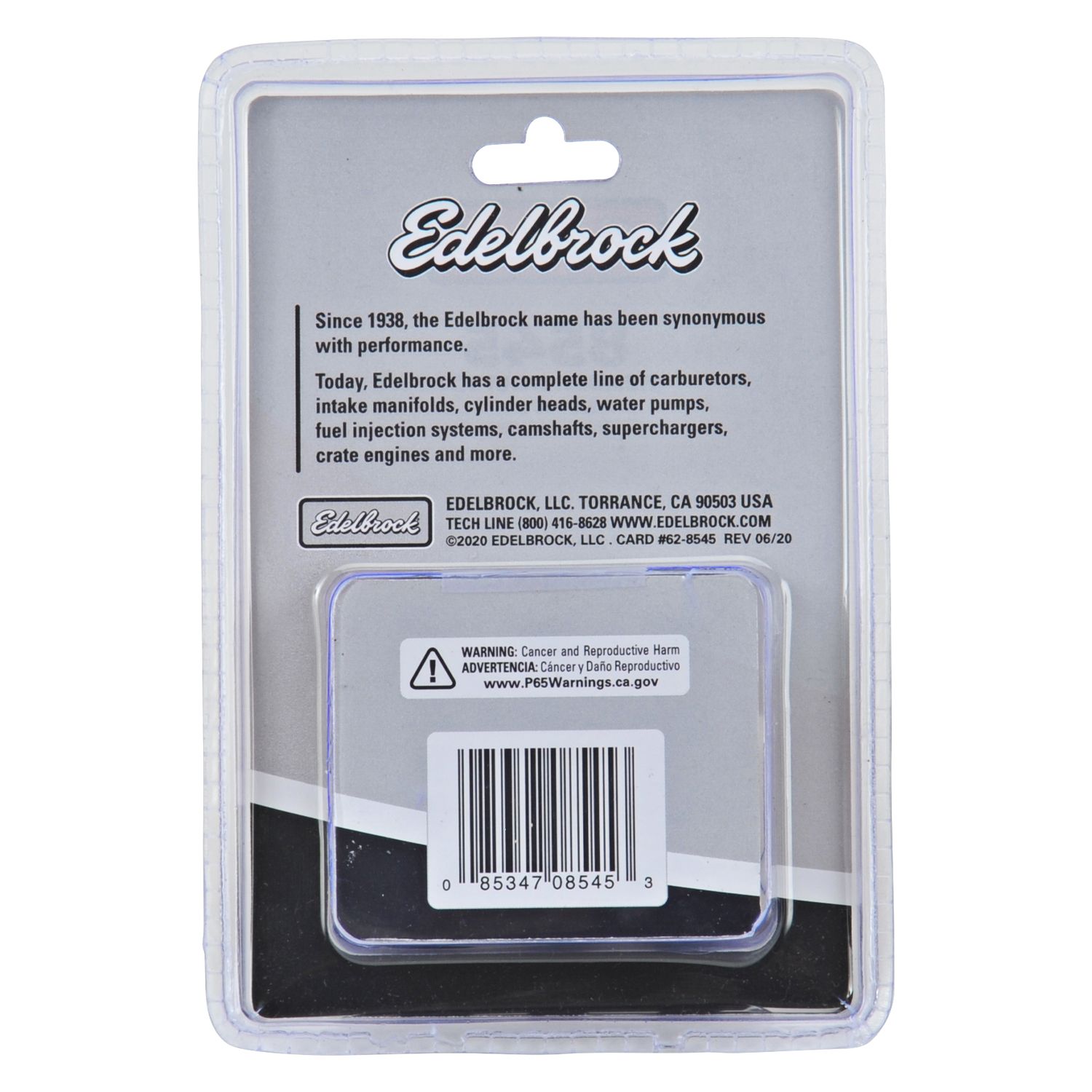 Edelbrock Exhaust Header Bolt Kit #8545 contains a set of 12 high-quality black oxide steel flanged bolts for universal applications that require a 3/8-16 thread pitch and 1-inch length. These header bolts feature a combination hex-Allen head that allows you to use a 7/16 combination wrench. The flange design helps to distribute pressure and eliminates the need for separate washers. The black oxide finish provides a nice aesthetic look with mild resistance to corrosion in dry environments.