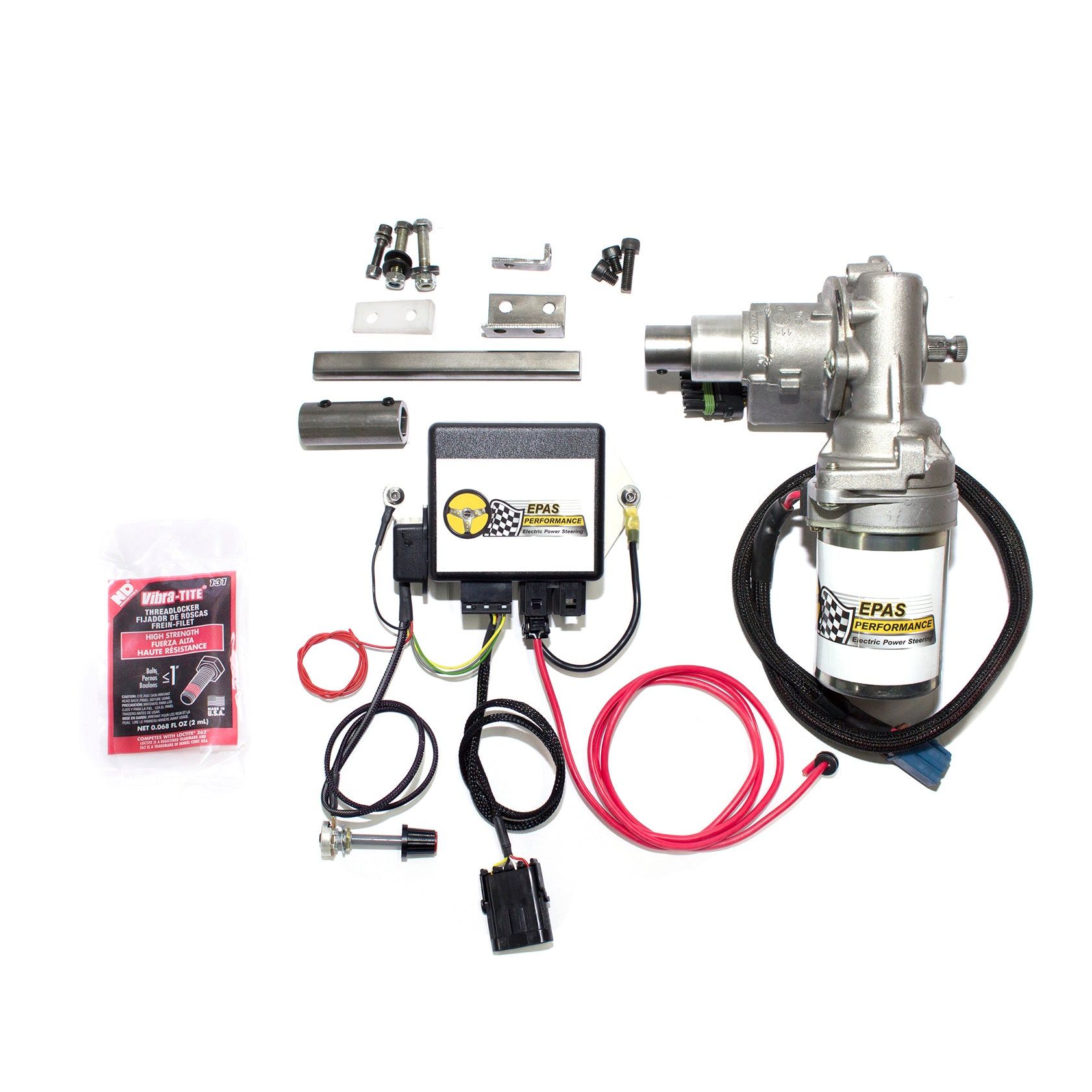 Kits available for floor shift models only. Please call for details on column shift vehicles. How it works: The computer measures the amount of effort on the steering wheel and amplifies it with the aid of the electric motor. A potentiometer gives you control over the amount of assistance provided, allowing you to fine tune your EPAS experience. For example, you can have maximum power assist while on a parking lot, and less on the highway. The system is only active while turning. The installation of this system should be done by a professional mechanic or a very knowledgeable amateur.