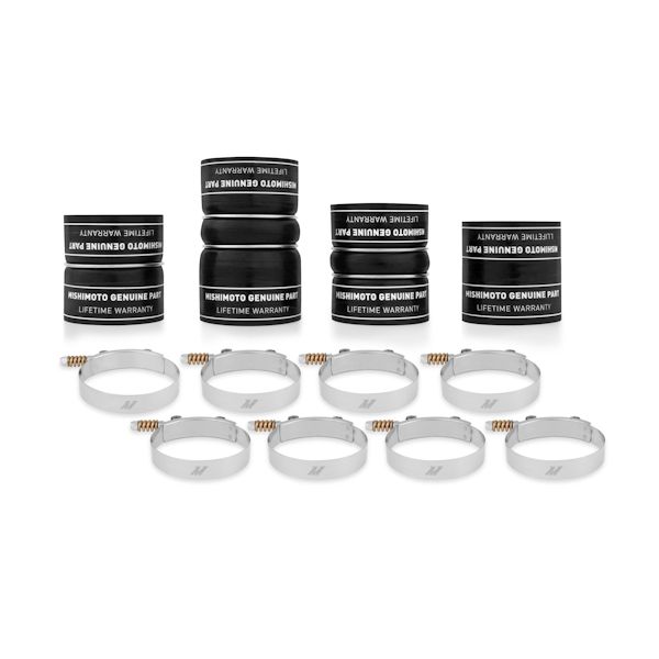 TechSpec Purchase Includes: (4) Silicone Boots with DuraCore Technology–(8) Constant Tension T-Bolt Clamps–Mishimoto Lifetime Warranty
