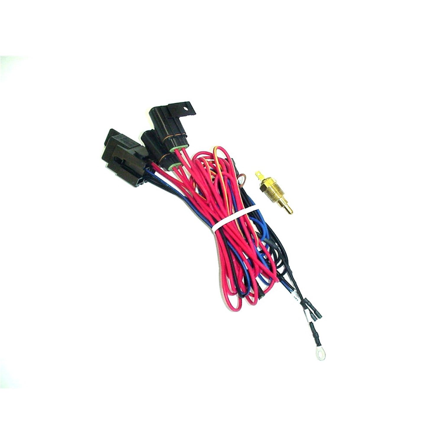 Wiring harness kit operates an electric radiator fan according to engine water temperature. Kit includes heavy gauge wire harness, relay, weatherproof fuse, electrical connectors and 185° temperature switch. (Can be converted to a 6V operation for Pacesetter 6V Series).