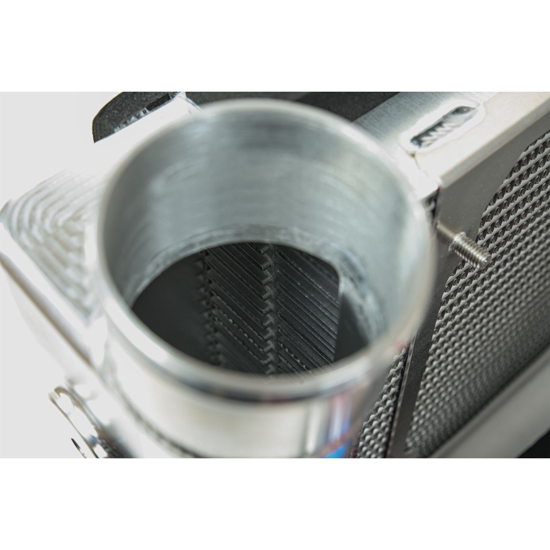 The CSF by PWR 488/F8 Twin Intercooler Set features Formula-1 grade cores which offer the greatest reduction in IATs and help eliminate heat soak. The Billet Aluminum construction offers the greatest strength and durability possible.