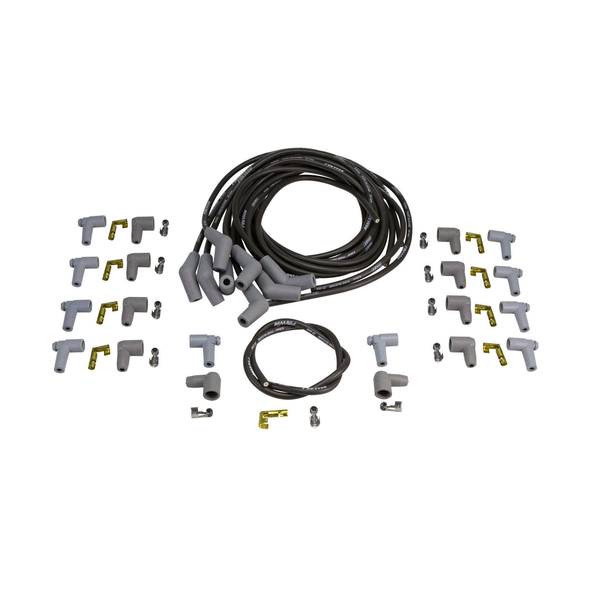 Kit contains 8 wires. Distributor terminal is HEI/Socket. Spark plug terminals are 45 Degrees.