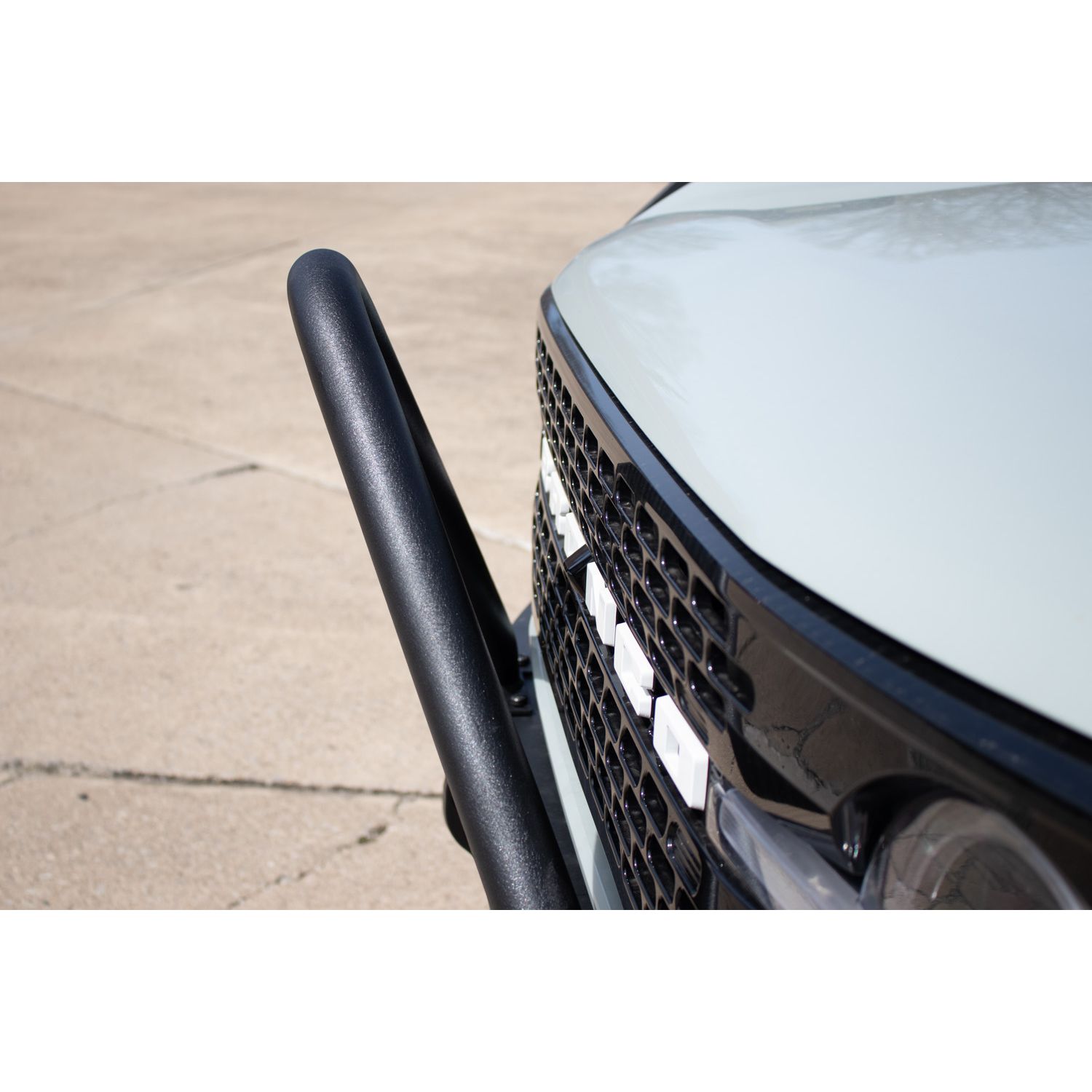 The Ford Bronco is no doubt a popular choice for off-road enthusiasts and adventure seekers all over the country, and the team at Fishbone has recognized that. That's why our engineers designed a stinger bar to meet growing demand for robust front-end protection that complements the Bronco's rugged look. This stinger bar installs directly on to the factory bumper, so adding a durable line of defense and a sleek new style isn't an all-day job. You can even mount lights directly on the stinger bar. For you Bronco owners looking to shield your ride from trail beatings without crimping its style, look no further.