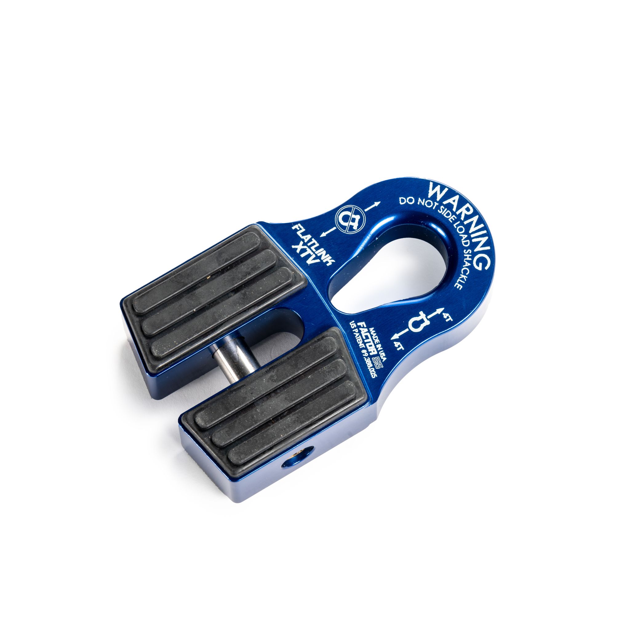 The FlatLink XTV allows UTV and ATV winch owners to replace the conventional winch hook with a stronger shackle/D-Ring. Flatlink XTV folds neatly into the fairlead when not in use and allows for a better approach angle than ProLink XTV. Utilized by search and rescue and militaries across the globe, the FlatLink XTV doesn?t require splicing and is compatible with steel or synthetic ropes up to 5/16? diameter. It attaches with a super strong aerospace-grade double shear titanium pin and snap ring, which is easily installed in minutes. The EPDM rubber guards protect alloy fairleads, prevents rattling, and is securely attached to the FlatLink XTV with four barbed tips.