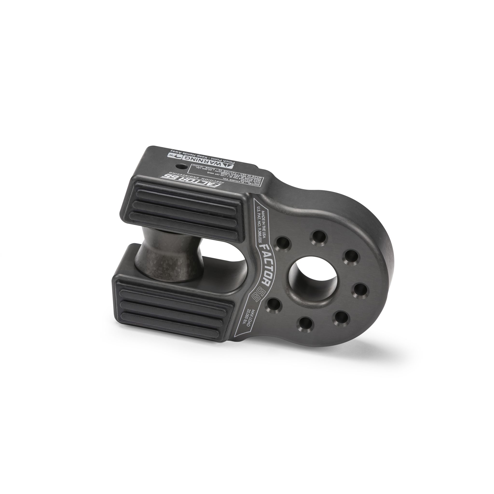 The Flatlink XXL, the world?s first foldable winch shackle mount with self-centering load spool. Compatible with wire rope diameters of up to 3/4" and synthetic rope tube thimbles up to 5/8" in diameter. Fits shackle pin diameters of 1 1/8". 7/8" diameter titanium double shear pin. Minimum breaking strength of 65,000 lbs. Conventional winch hooks can cut and fray recovery straps and often allow strap ends to escape during momentary slack cycles of a typical winching recovery. Screw pin or soft shackles do not allow strap loops to escape under slack conditions. Stows neatly against either roller or Hawse type fairleads. The EPDM Rubber Guards protect alloy fairleads and are securely attached with 4 barbed tips. MADE IN THE USA, the FlatLink XXL is constructed of 6000 series billet aluminum and features a Mil-Spec Hard Anodized Gunmetal Gray finish.