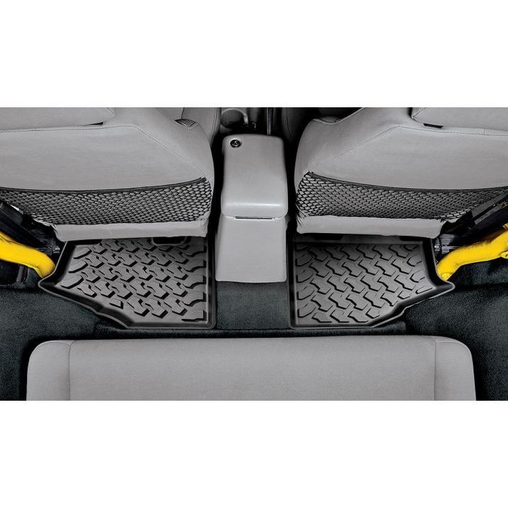 For most any Wrangler owner who really understands the type of dirt, mud, candy wrappers and such that make it onto the floor of the Jeep. Custom-molded to fit exactly into place in the vehicle, these floor liners keep the mess from spoiling your carpeted floor. Just take them out, hose them down, and you're ready for the next ride.