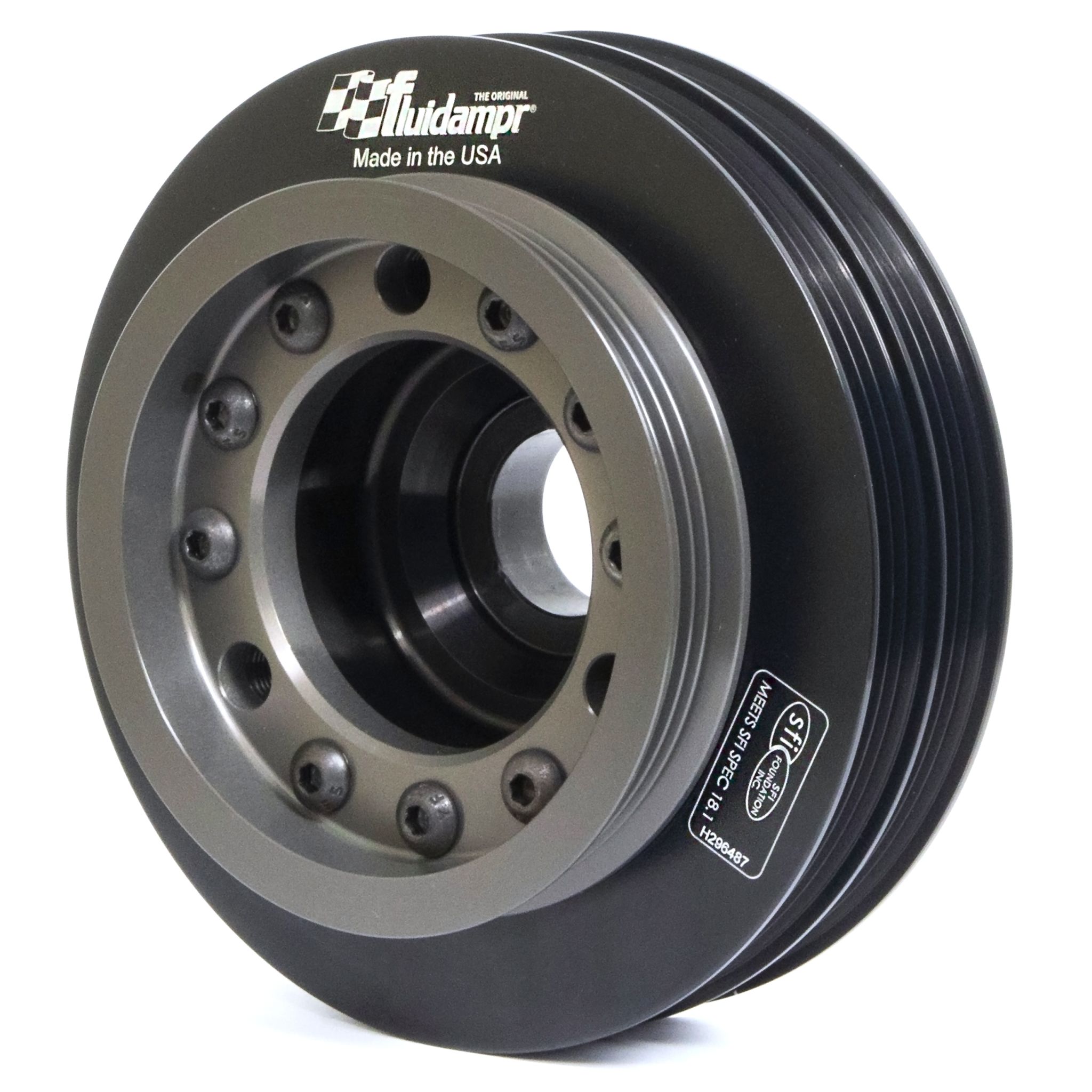 Protect your engine. Modifications can compromise your stock harmonic balancer. Install a Fluidampr performance damper early for best durability. Superior viscous damper design controls harmful torsional vibration across the entire rpm range. Reduce wear on engine components. Reduce risk of crankshaft failure. Improve timing. Unleash lost torque and horsepower. Precision CNC machined and balanced high-grade steel components. Corrosion resistant black zinc finish with engraved timing marks. No maintenance required. Trusted by leading engine builders worldwide. SFI 18.1 certified. Made in USA.