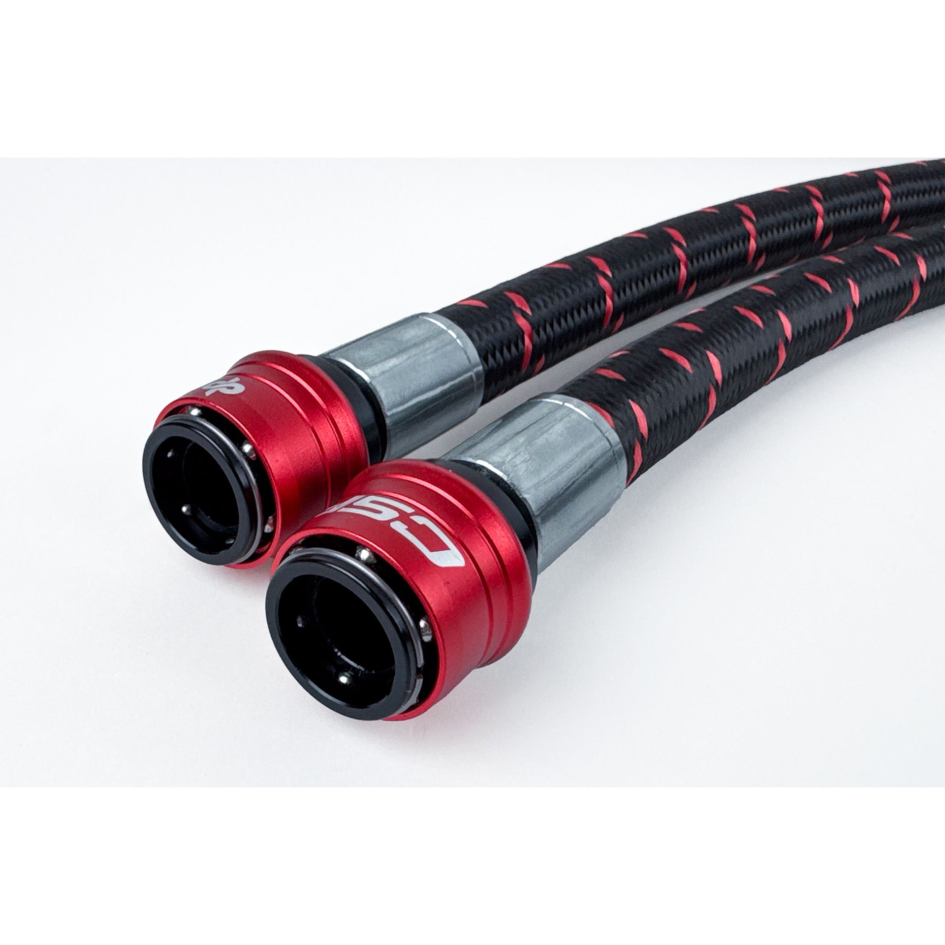 CSF partnered with DYME PSI for their exceptional quality and innovative quick-release hose and fitting solutions. The DYME Pro/Spec Quick Release Fittings offer race-proven performance with the convenience of tool-free clamshell removal and capable of withstanding up to 10,000 PSI. Quick Release fittings make the installation of the CSF kit much faster than traditional threaded fittings. In addition, they make maintenance like fluid changes much less of a headache. The hoses are a Superstrasse CPE lined stainless steel braided rubber hose for maximum flexibility, flow, and chemical resistance. The lines are ideal for motorsports use and more than capable of handling the rigors of off-roading.