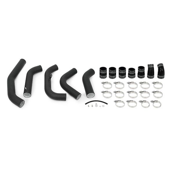 TechSpec Includes: (5) Aluminum Intercooler Pipes–(7) Silicone Boots with DuraCore Technology–(14) Constant-Tension Worm Gear Clamps–(1) Boost Control Solenoid Tube–Mounting Hardware–Mishimoto Lifetime Warranty
