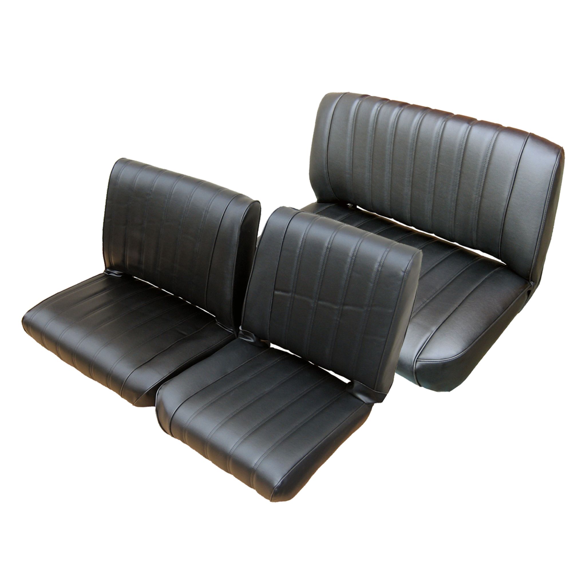 Front 2/3, 1/3 Bench and Non-Folding Rear Bench Upholstery, 2" Pleats, 1967-73 Willys Jeepster Commando