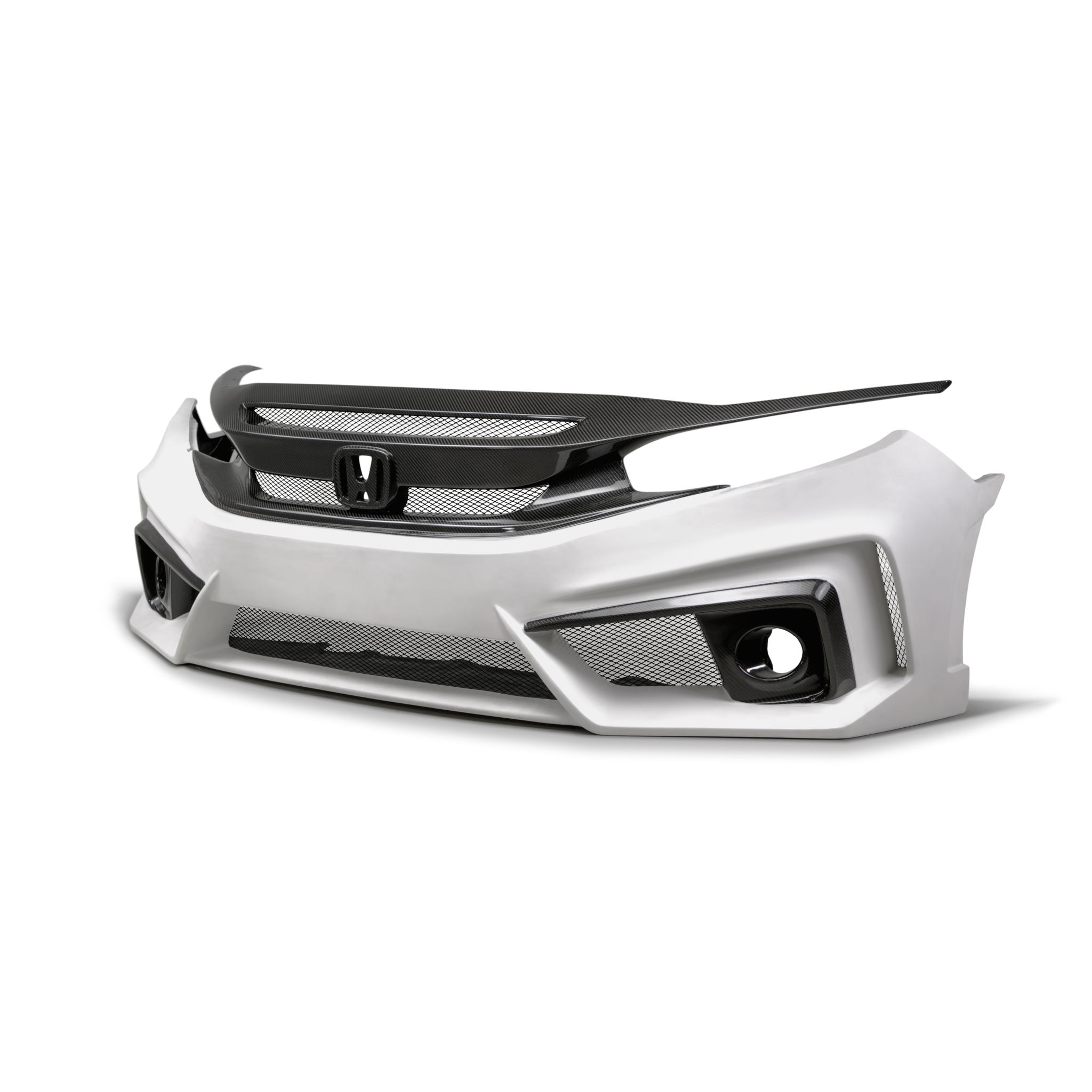TT-style fiberglass/carbon fiber front bumper for 2016-2020 Honda Civic 4 Dr