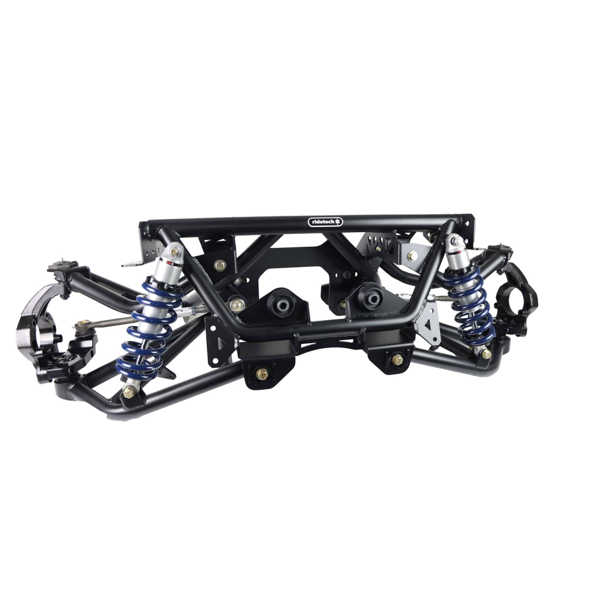 Front caliper brackets for SN95 (94-04 Mustang) Cobra brakes with Ridetech 79-93 Mustang SLA. Includes a pair of brackets, caliper spacers, shims and hardware.