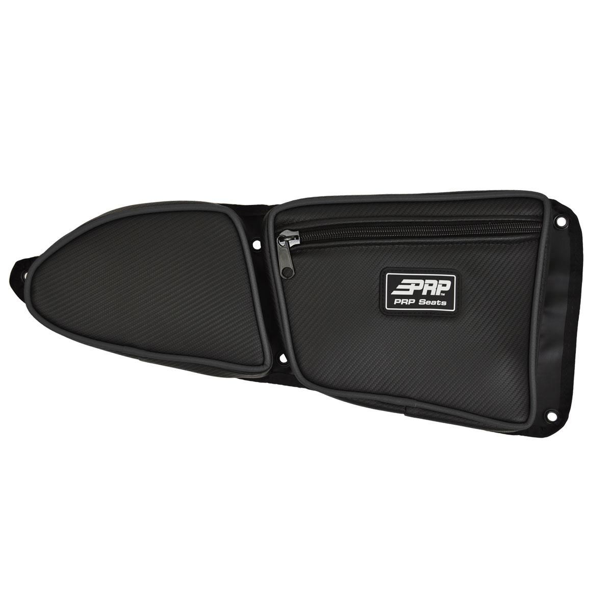 The original door bag everyone is talking about! Protect your knees and add storage to your factory doors with PRP Seats' Stock Door Bag with Knee Pad. It provides convenient storage, that's easy to access even while your strapped down in your seat. Perfect for holding onto cell phones, water bottles, rags, goggles, and more. The Knee Pad in the front stop your knees from banging against the door when you bounce around in rough terrain. This bag attaches to the stock door with the factory screws and a small strip of hook and loop to keep it snug. Available for the driver or passenger side door, with several color options to choose from. U.S. Patent No. D774,432 Fitment Polaris RZR 900 XC Polaris RZR S 900 Polaris RZR XP 1000 Polaris RZR XP Turbo Polaris RZR Turbo S *Does not work on 2020+ models with speakers on the door.