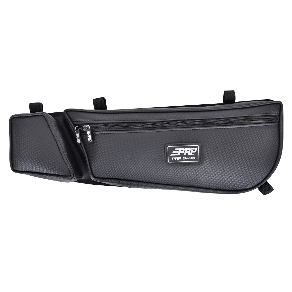 These Door Bags are a must have for any Can-Am X3 or X3 MAX owner. It provides convenient storage, that's easy to access even while your strapped down in your seat. Perfect for holding onto cell phones, water bottles, rags, goggles, and more. The Knee Pad in the front stop your knees from banging against the door when you bounce around in rough terrain. This bag attaches quickly and easily to the stock door frame with several velcro loops. Constructed with durable, puncture resistant vinyl coated nylon and marine-grade vinyl. Available with in several different colors. Sold as a pair. Fitment: Can-Am Maverick X3 Can-Am Maverick X3 MAX (front only)