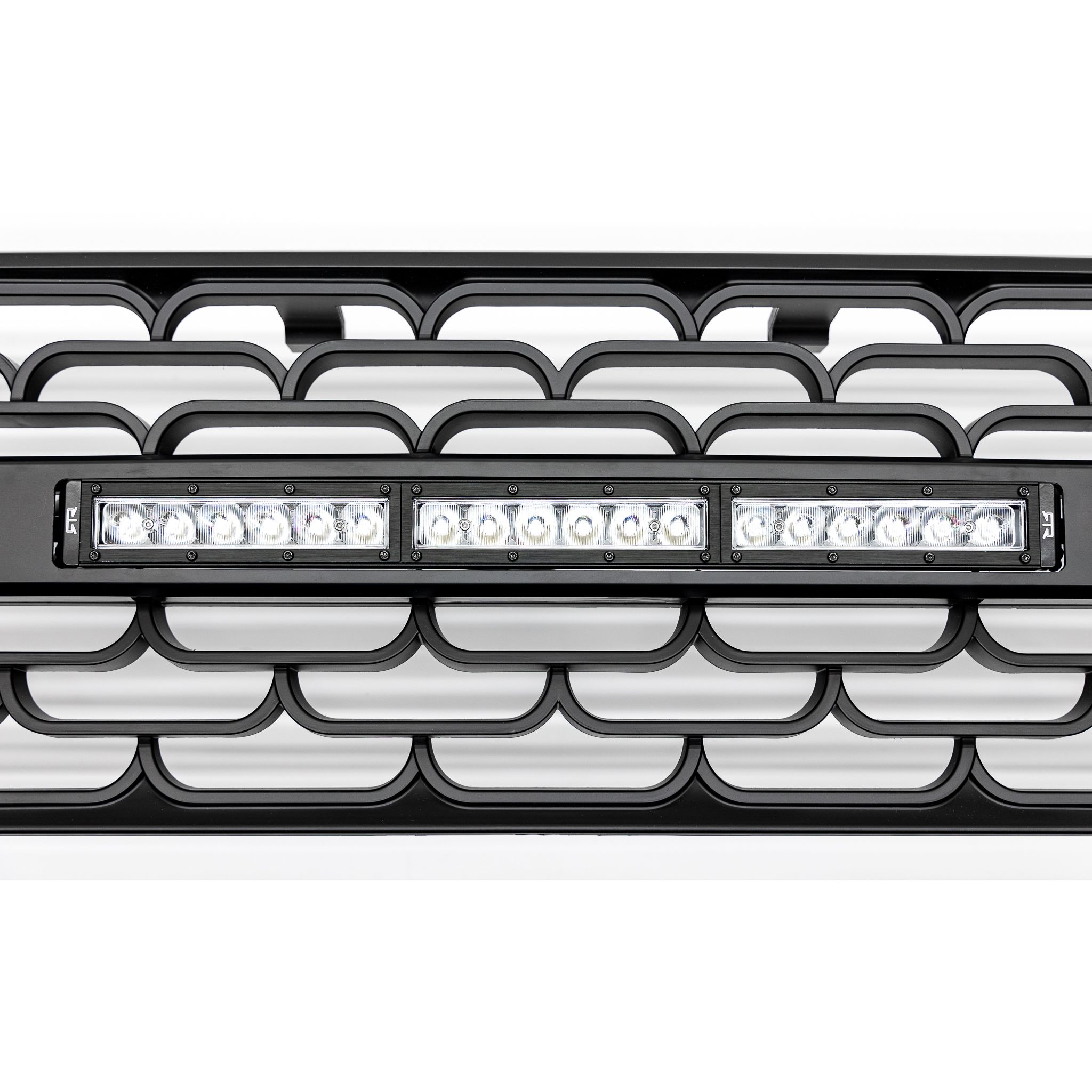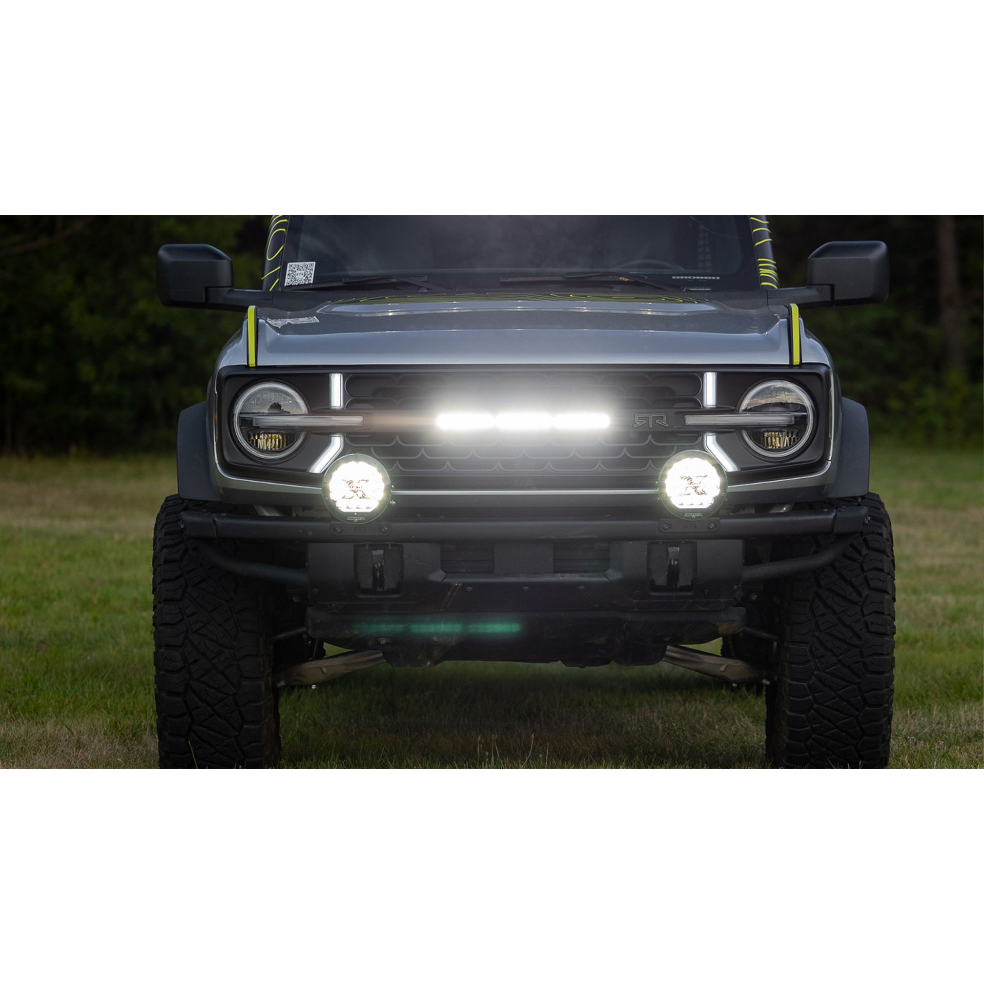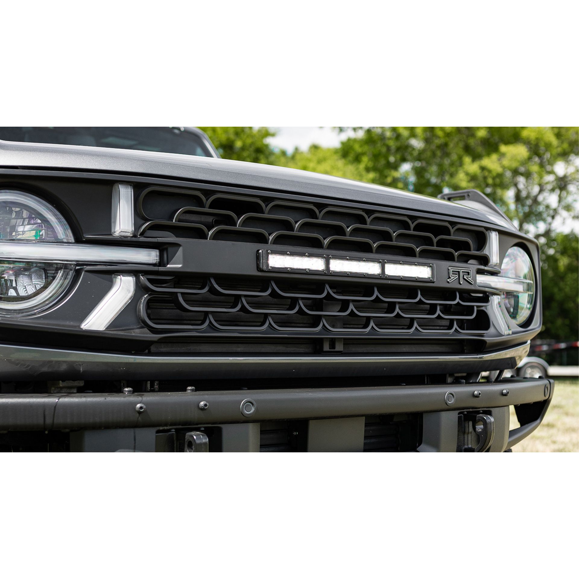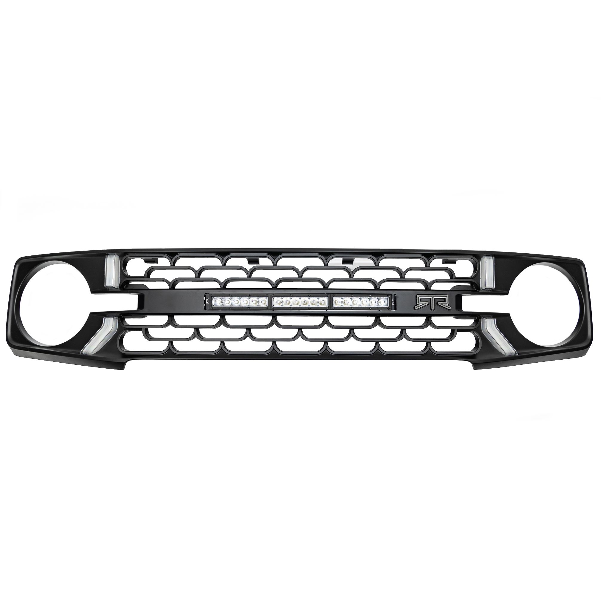 Modern Aggressive RTR Styling. With a unique design that plays off the factory surfaces of your Bronco, you will find the RTR Bronco Grille stand out from anything else on the market. No fake bolts here, only modern, aggressive RTR styling. High-Quality Construction. The RTR Bronco Grille is designed and manufactured with consideration of OEM fitment. This grille is designed to be a direct replacement for your factory Ford grille, no modification required. The lightbar outfitted centerbar of the grille is modular and can be interchanged with other RTR centerbars. This grille features the RTR signature LED accent lights integrated directly into the grille as well as an 18-inch LED lightbar. LEDs are protected by UV hard coated lenses to prevent fading and to protect their color over time.The lightbar centerbar is not compatible with vehicles outfitted with 360 camera. Simple, Straight Forward Installation. The RTR Grille is designed using OE Manufacture CAD data and is installed with high-quality hardware and mounting points. There is no cutting or modification required for a clean, straight forward installation. Made in the USA. The RTR Lightbar Grille w/ LED Lights is proudly designed and manufactured in the United States. Installation & What's In The Box. What's in the Box-. (1) Main Grille. (1) Centerbar. (1) Assembly Hardware Kit. (1) LED Light Bar w/ Wiring Harness. (2) Light Bar Brackets. (1) Upper Blockoff Plate. (4) Accent Lights. (2) Accent Light Adapter. Installation Time- (approx.) 2-3 hours. Difficulty Level- Simple installation.