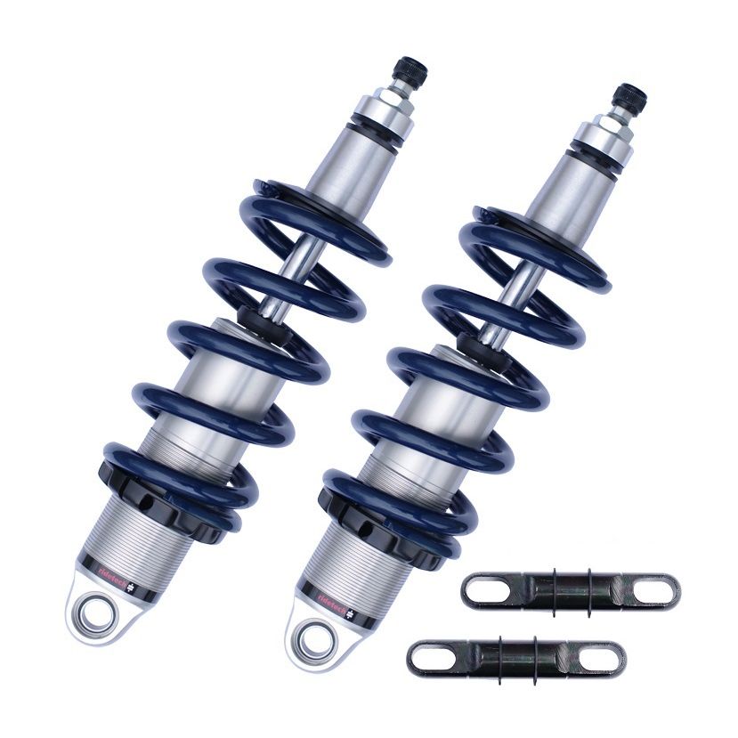Front HQ Coil-Overs for 1955-1957 Bel Air. For use with stock lower arms. Includes a pair of rebound adjustable shocks, springs, spring mounts, delrin spring washers and t-bar.