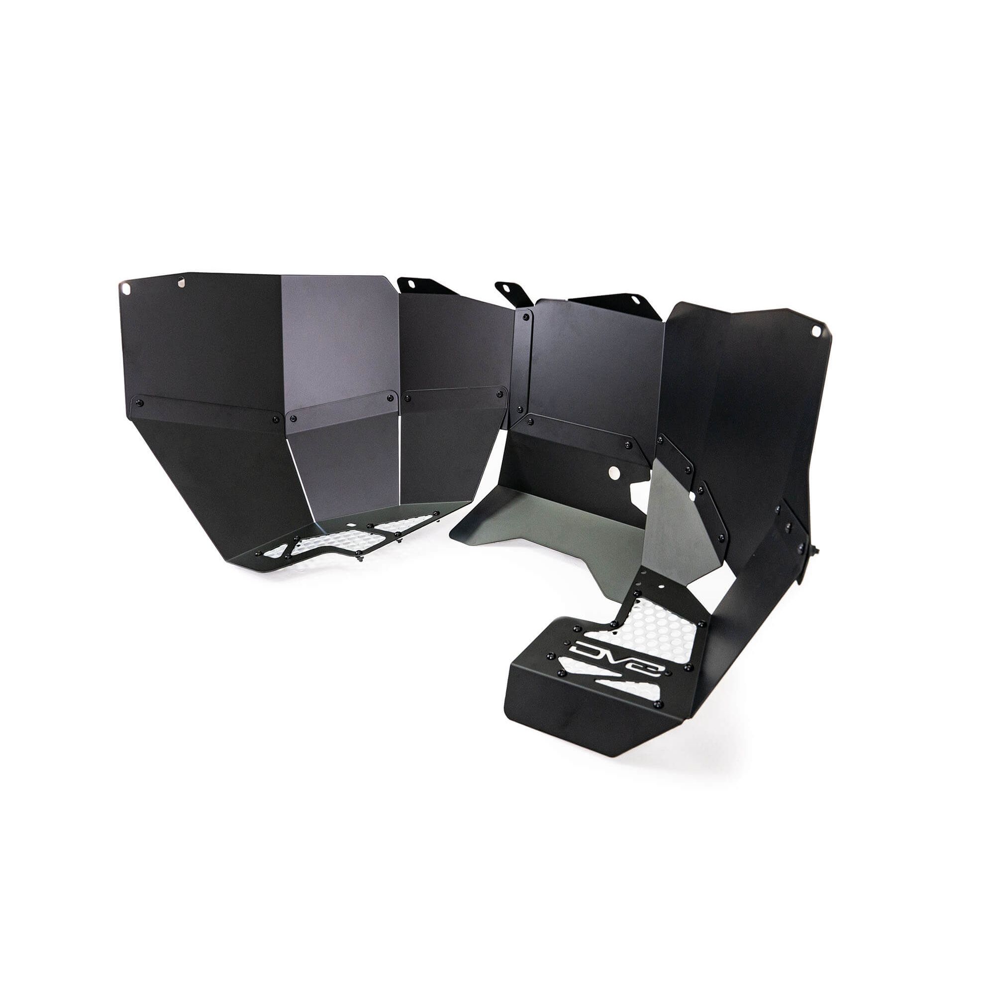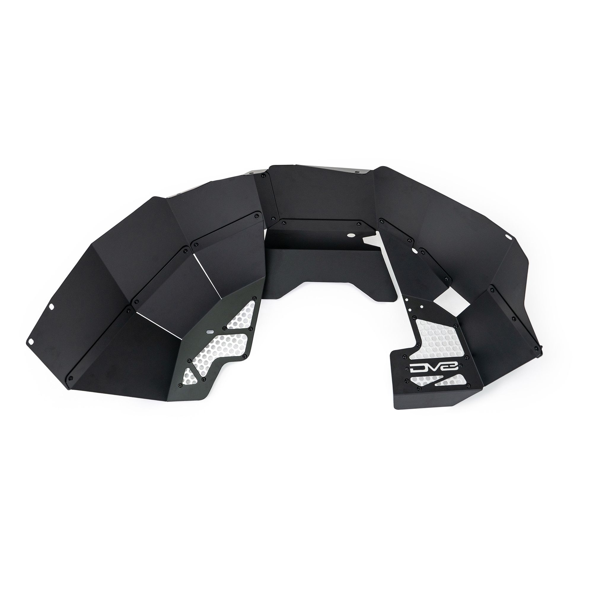 These Bronco Inner Fenders bring utility and style to your front wheel wells. They are constructed from 1.5mm & 2.0mm lightweight aluminum panels, then finished in a Satin Black powder coat. Aluminum mesh panels increase airflow to the engine compartment. These mesh panels can be removed and painted, or left in their raw aluminum tone.