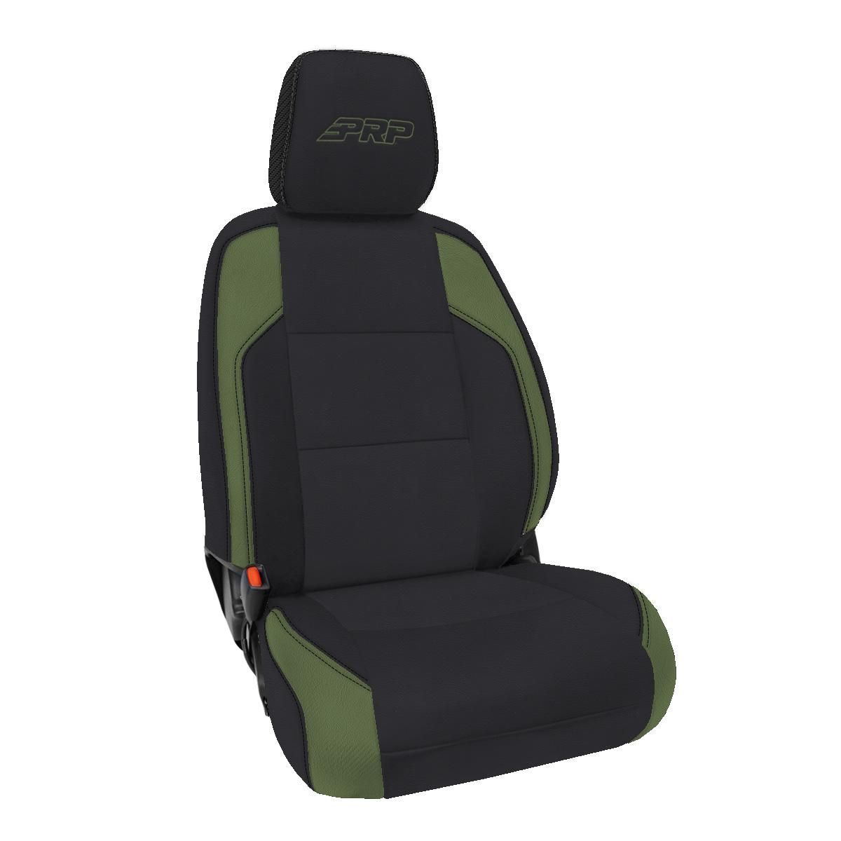 EXT: Front Seat Covers for 2016-2023 Toyota Tacoma with Electric Seat Adjusters (Pair) – Black and Olive Green