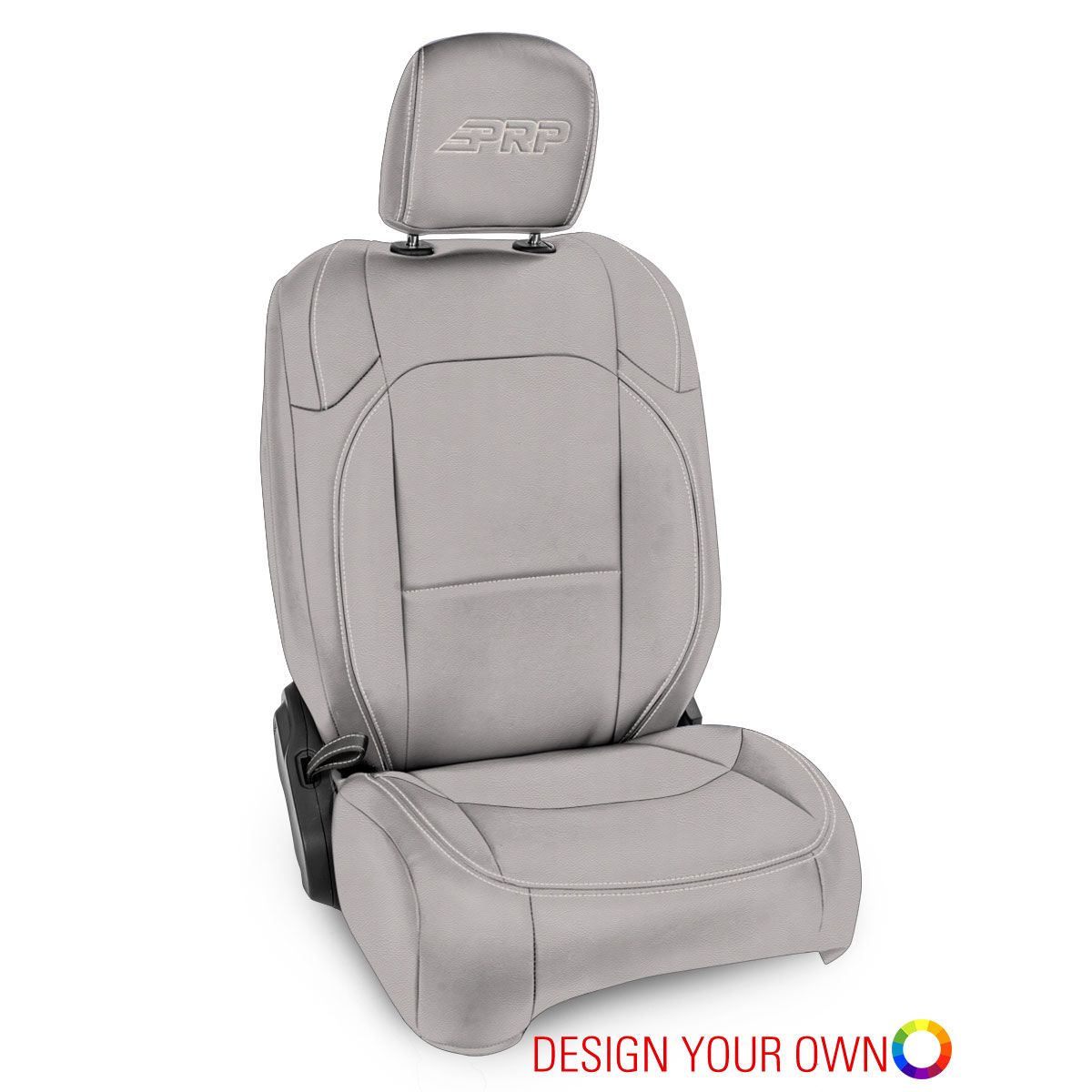 PRP's Seat Covers for the Jeep Wrangler JL & Jeep Gladiator JT bring a whole new look to your interior. Whether you use it as a daily driver or treking through backcountry trails, you’ll get the protection and customization that only PRP Seat Covers can offer. These covers have been expertly crafted to fit perfectly over your factory Jeep seats providing an OEM fit and finish. Made from durable water and UV resistant materials, they can handle the abuse from both on and off-road environments. The covers install over your stock upholstery, and are side impact airbag compatible. You can install these covers yourself, or through a certified PRP installer. Sold as a pair. Proudly made in the USA. Design your own and Make it Yours! With over 60+ different colors and materials to choose from, you can customize the perfect seats for your ride. Complete your whole interior with our matching Rear Seat and Center Console Covers! Fitment: Several different seat covers models are available depending on your vehicle: for those have the seats that feature the Plastic Molle seat back, and the standard Pocket Seat Back for all other Wrangler & Gladiator Editions. *Note- These covers are only for seats with Manual Seat Adjusters. Covers for seats with Electric Seat Adjusters – Coming Soon. FRONT SEAT COVERS AVAILABLE FOR THE FOLLOWING JEEP MODELS: 2018+ Wrangler JL 2 Door (Pocket Back) – B037 2018+ Wrangler JL 2 Door (Molle Back) – B038 2018+ Wrangler JL 4 Door, 2020+ Gladiator JT, 4XE (Pocket Back) – B039 2018+ Wrangler JL 4 Door, 2020+ Gladiator JT, 4XE (Molle Back) – B040 2020+ Gladiator JT Mojave Edition & Wrangler JLU 392 Edition (has larger bolsters on seats) – B063