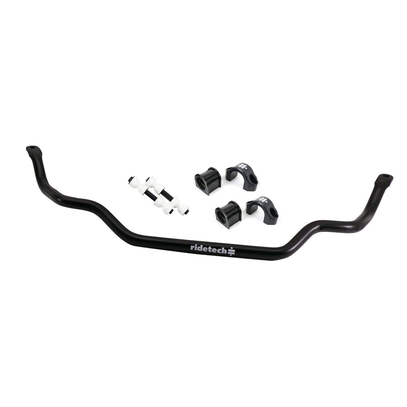 Front sway bar for 1967-1970 Mustang with big block. For use with stock or Ridetech lower arms. Does not fit big block engine. Includes sway bar, end links, bushings, brackets and hardware.