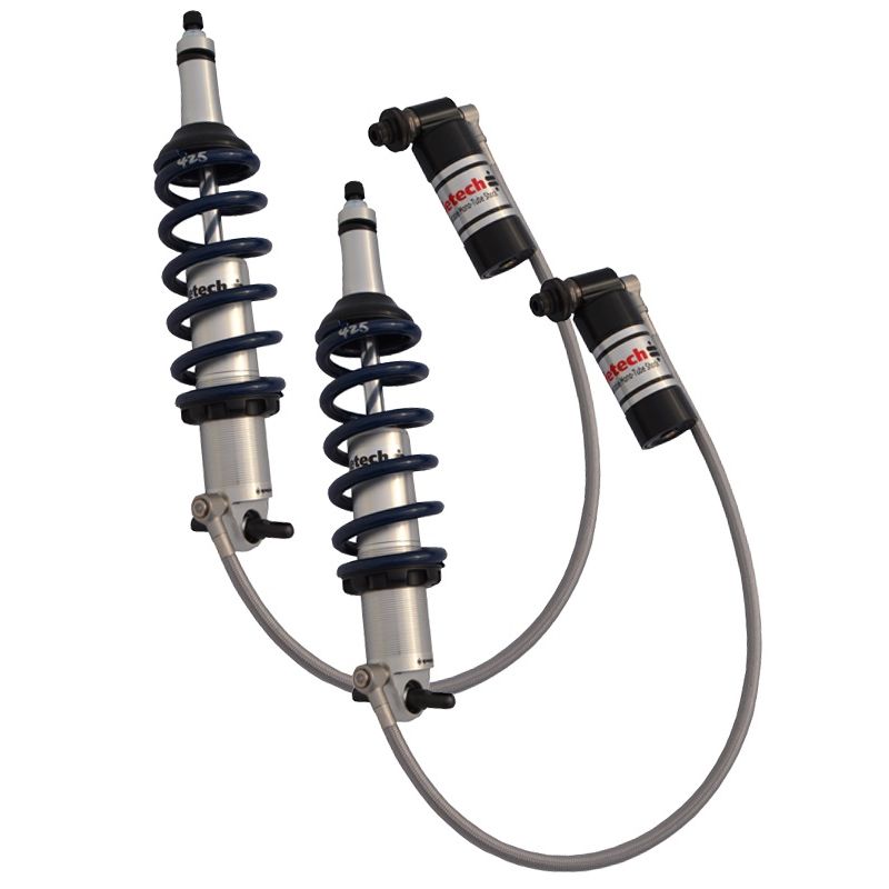 Front TQ Coil-Overs for 1997-2013 Corvette. Includes a pair of triple adjustable shocks, springs, spring mounts and delrin spring washers.