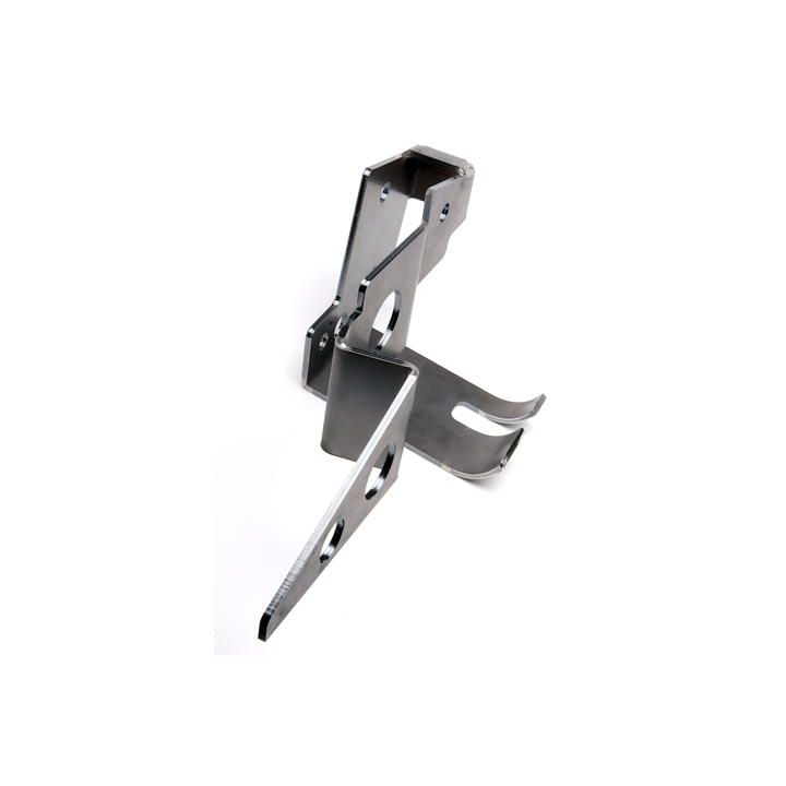 Reinforce your Jeep JK Wrangler’s front track bar mount for less deflection and more reliability. It may even prevent catastrophic track bar mount failure. The heavy-duty design welds directly to the OE mount and axle housing at multiple points to provide extremely strong and permanent solution. A secondary track bar mounting hole accommodates high-clearance steering conversions while the smooth bottom skid plate slides over obstacles. Precision cut and CNC formed from premium grade steel. Ready-to-weld and paint bare metal finish.