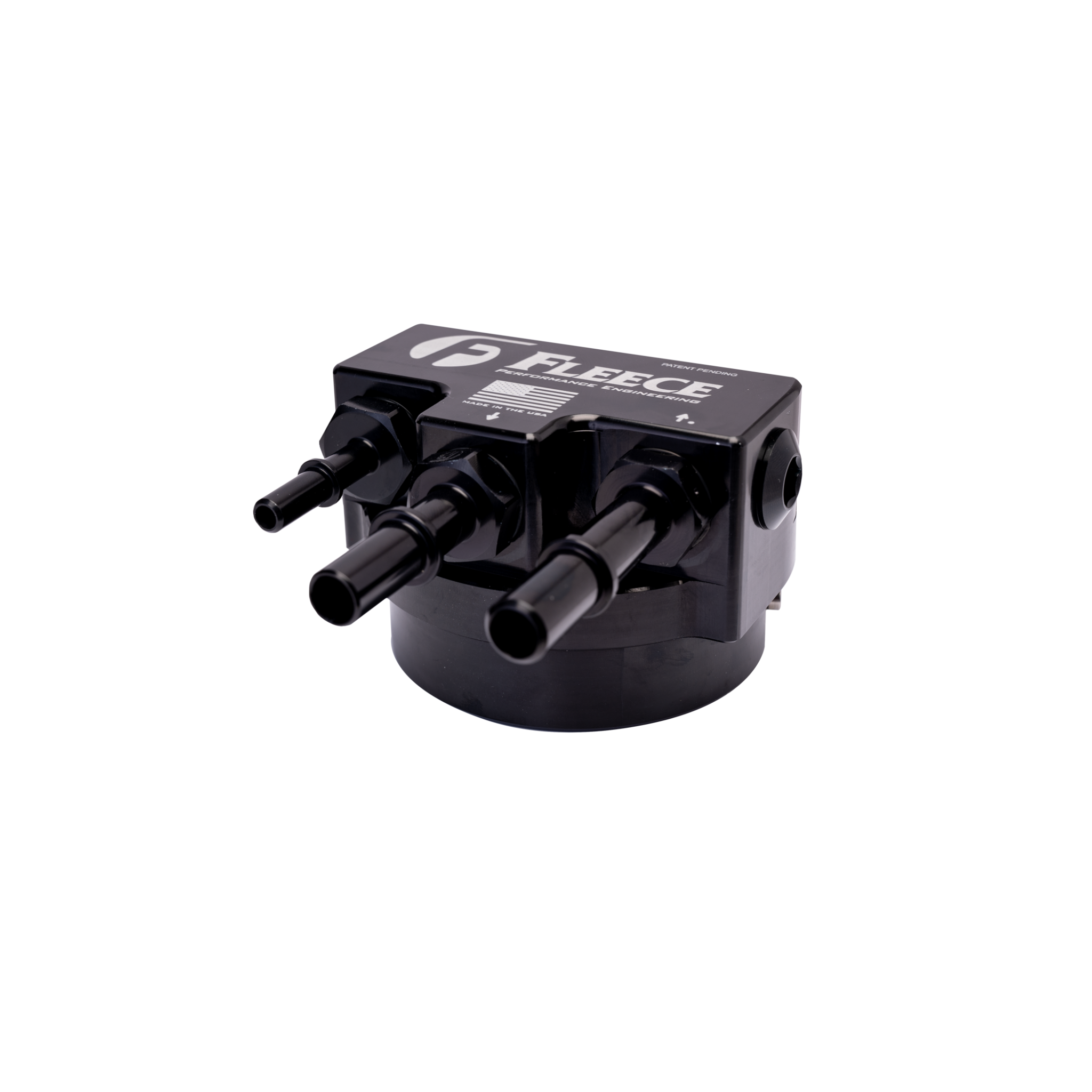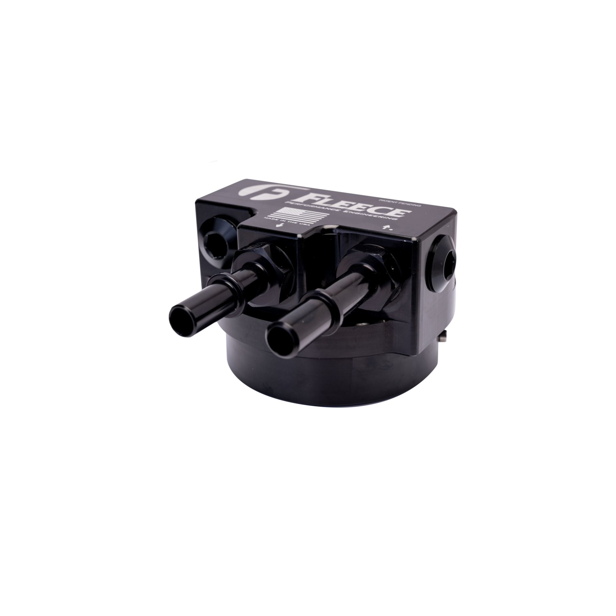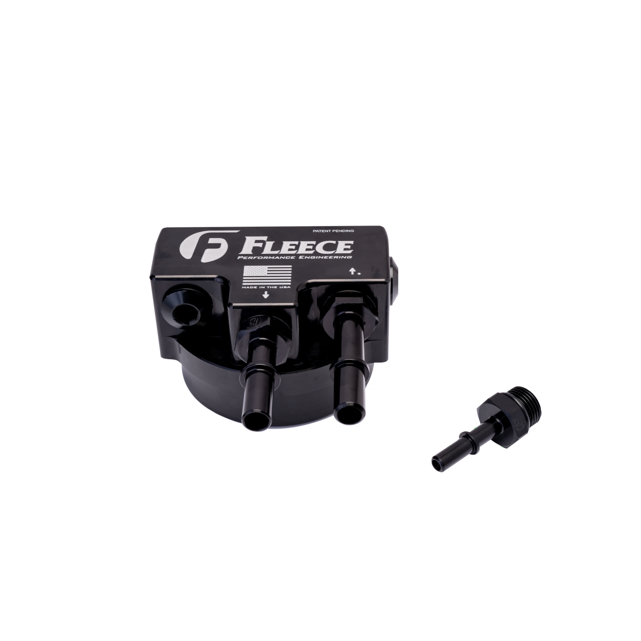 All New Fleece Performance Fuel Filter Bypass for the under hood filter assembly on the Ford F250/350/450/550 6.7L Powerstroke! If you are running an aftermarket lift pump or auxiliary fuel filtration and are looking for the cleanest manner to eliminate the crack prone under hood filter, this Fuel Filter Bypass is for you! Installs directly in place of the under hood filter and requires absolutely no cutting, splicing, or modifications of your OE fuel lines. Features Drop-in replacement for the factory under hood filter – no lines to cut or modify Heavy duty anodized billet aluminum bypass block and quick-disconnect fittings Application Notes Fits 2011-2024 F250/350/450/550 with 6.7L Powerstroke. The 2011-2016 model trucks use only one inlet and one outlet fitting. For 2017-2024 trucks, an additional quick disconnect fitting is provided for the required additional fuel return. This product removes the underhood filtration supplied by the OEM and should only be used in conjunction with auxiliary fuel filter systems that meet or exceed the OEM's overall fuel filtration specifications.
