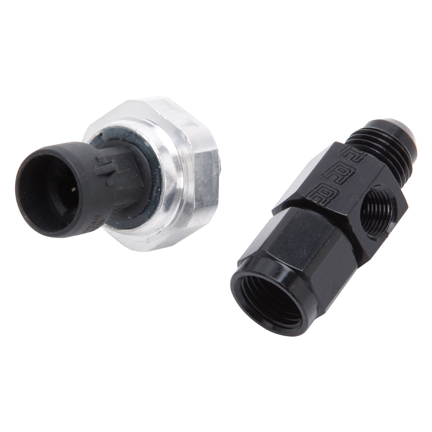 Edelbrock part #3546 for Pro-Flo 3 Fuel Sensor, It includes a 1/8-27 NPT fuel pressure sensor with a -6 AN fuel pressure take-off fitting