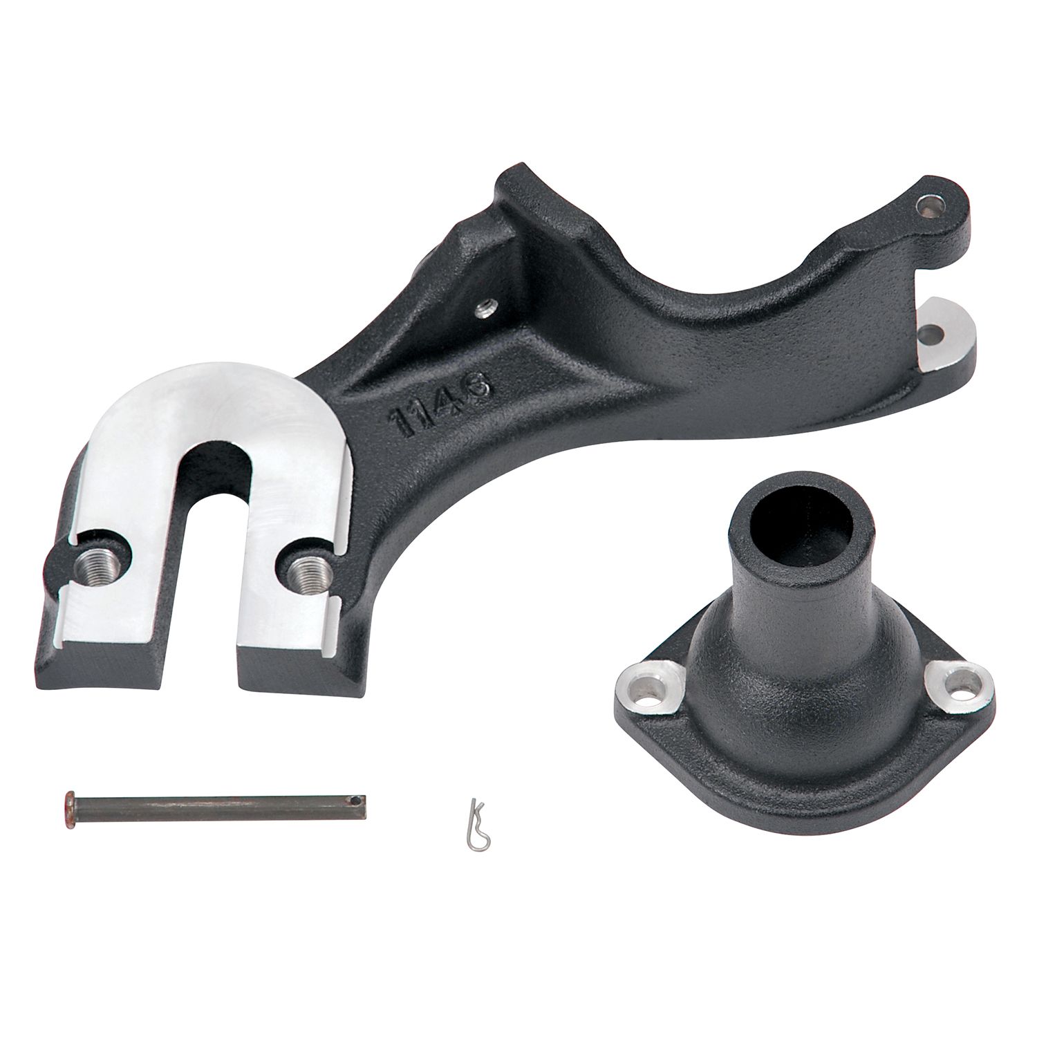 Edelbrock part #11463 is a Generator kit for our 1109, '49-53 Ford Flathead Triple Deuce Intake Manifold. It is for those using the manifold in conjunction with a stock style generator. The purpose of kit is to remedy the interference between the generator and forward-most carburetor. The kit includes an offset generator bracket and water outlet (thermostat housing). The offset bracket attaches to the standard generator mount flange on the manifold but moves the generator out to the right where it is clear of the forward-most carburetor. The included water outlet allows the hose to be routed out past the generator before turning towards the radiator. (This is not required for the triple deuce manifold on motors with early center outlet heads.) 11463 is the same as PN 1146, but the bracket is powder coated with a durable black finish prior to machining.
