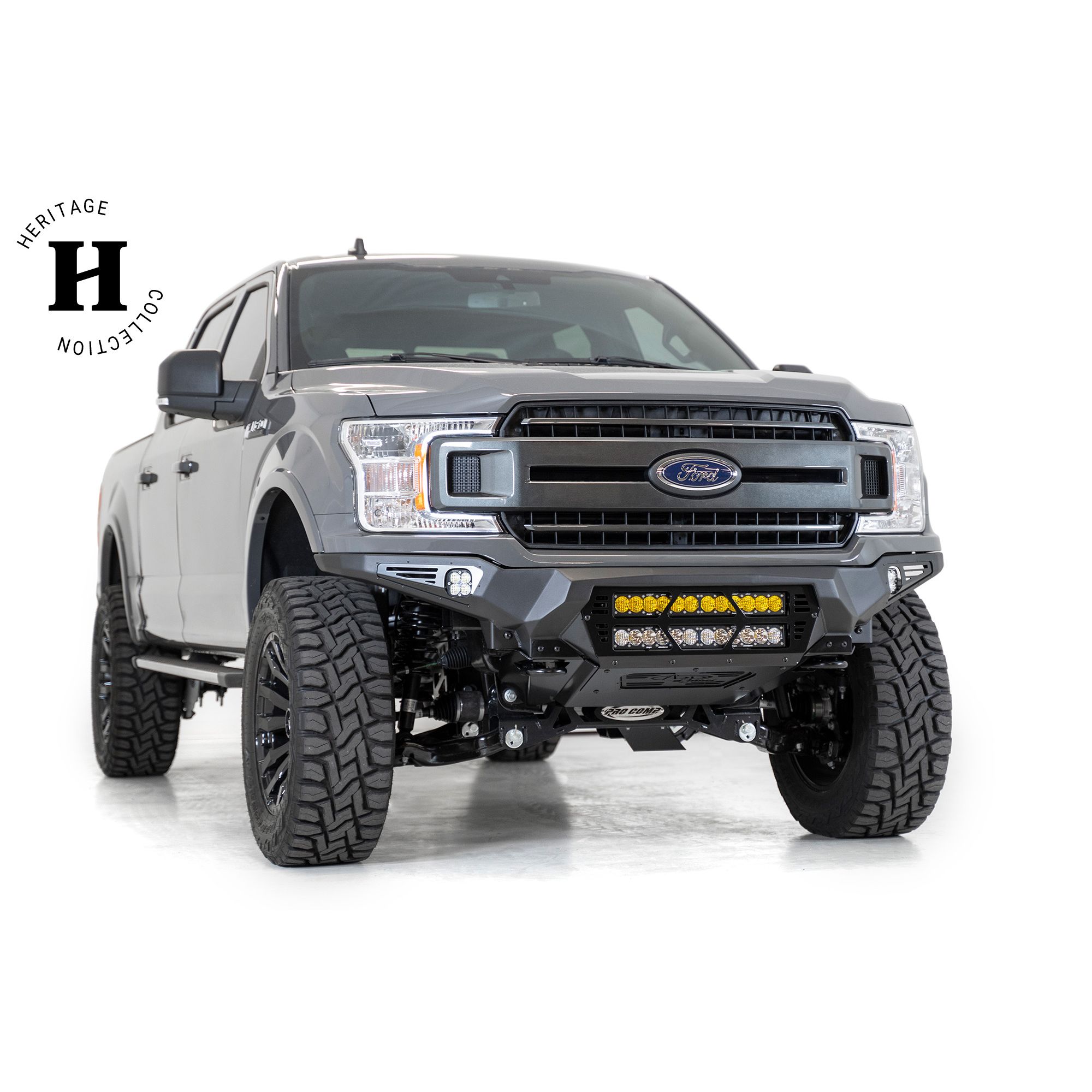 Ford F150 2018 – up Bomber Front Bumper with Dual 20" LED Mounts and Dually Mounts on Sides in Hammer Black with Satin Black panels