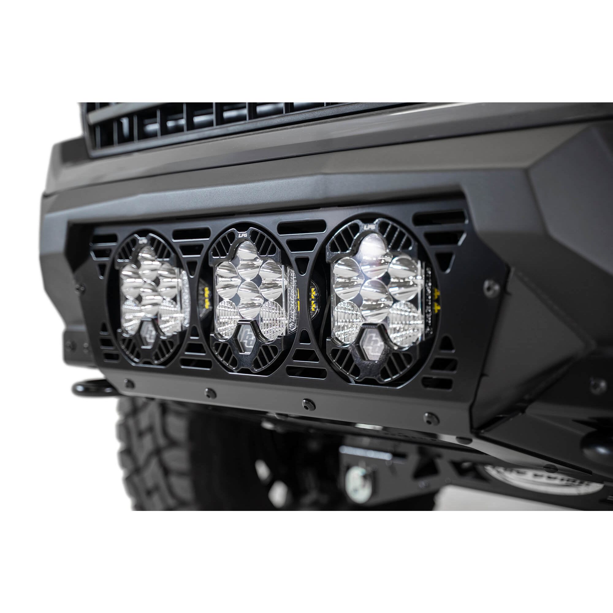 Ford F-150 Bomber Front Bumper with 3 Baja Designs LP6 Mounts and Dually Mounts on Sides in Hammer Black with Satin Black panels