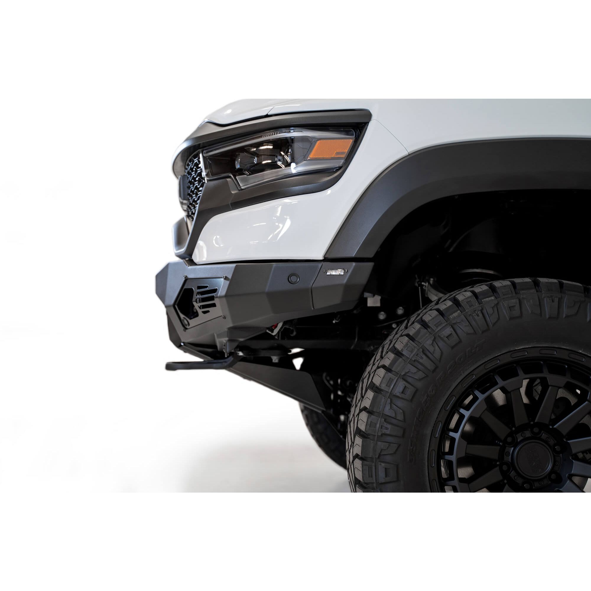 Transform the front end of your Ram TRX with the Addictive Desert Designs Bomber Front Bumper. The modern plate steel design brings aggressive styling while remaining low-profile. The center of the bumper provides inset mounting points for four Rigid 360 6 inch round lights, while each side panel provides a cube light mounting point.