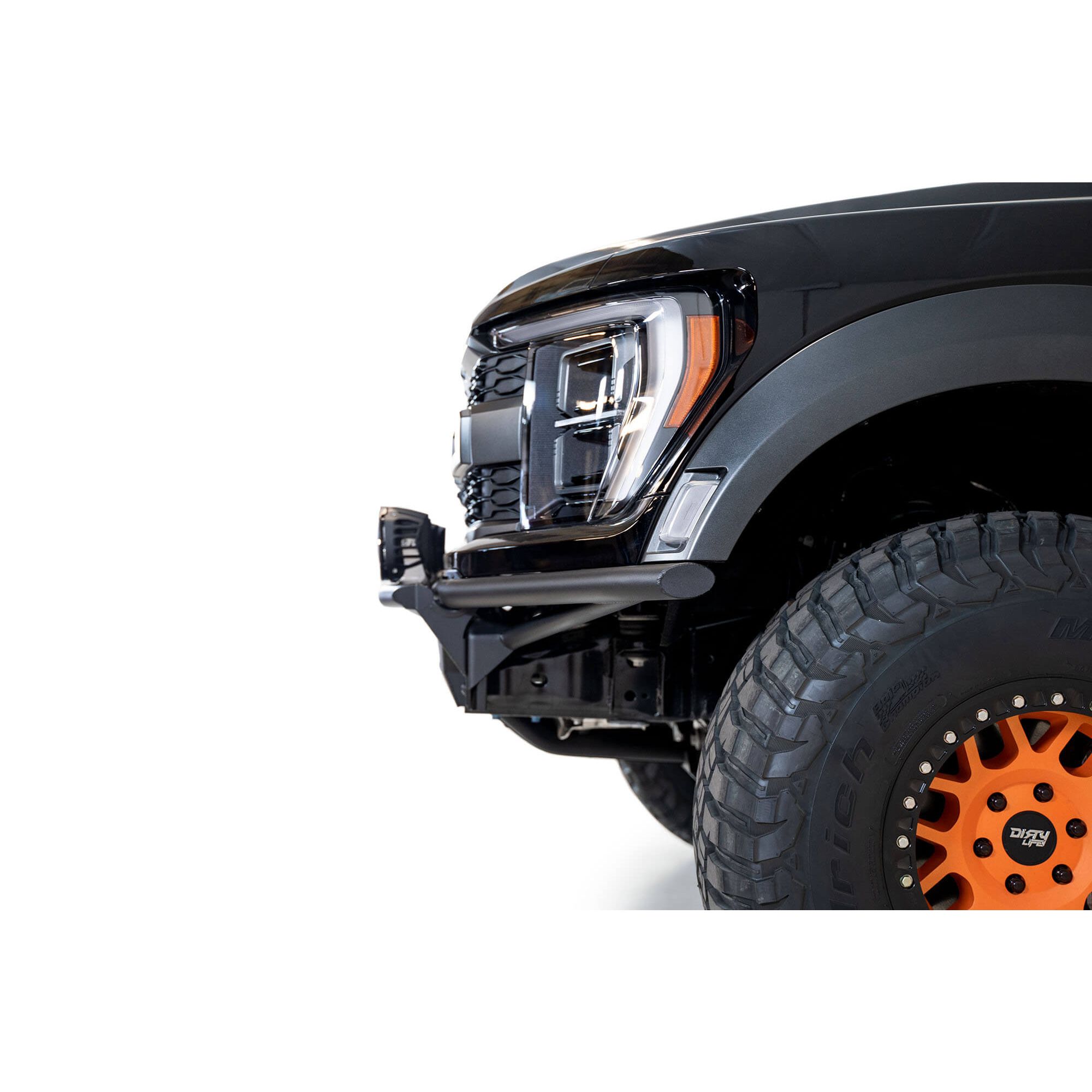 This add-on light hoop for the 2021+ Ford F-150 Raptor was designed to allow you to install four additional 6-inch LED round lights on your ADD Pro-Bolt On Front Bumper. The hoop is made from the same .120-inch steel wall tubing that the bumper it mounts on is made from. As always, this is fully bolt-on and Made in America.