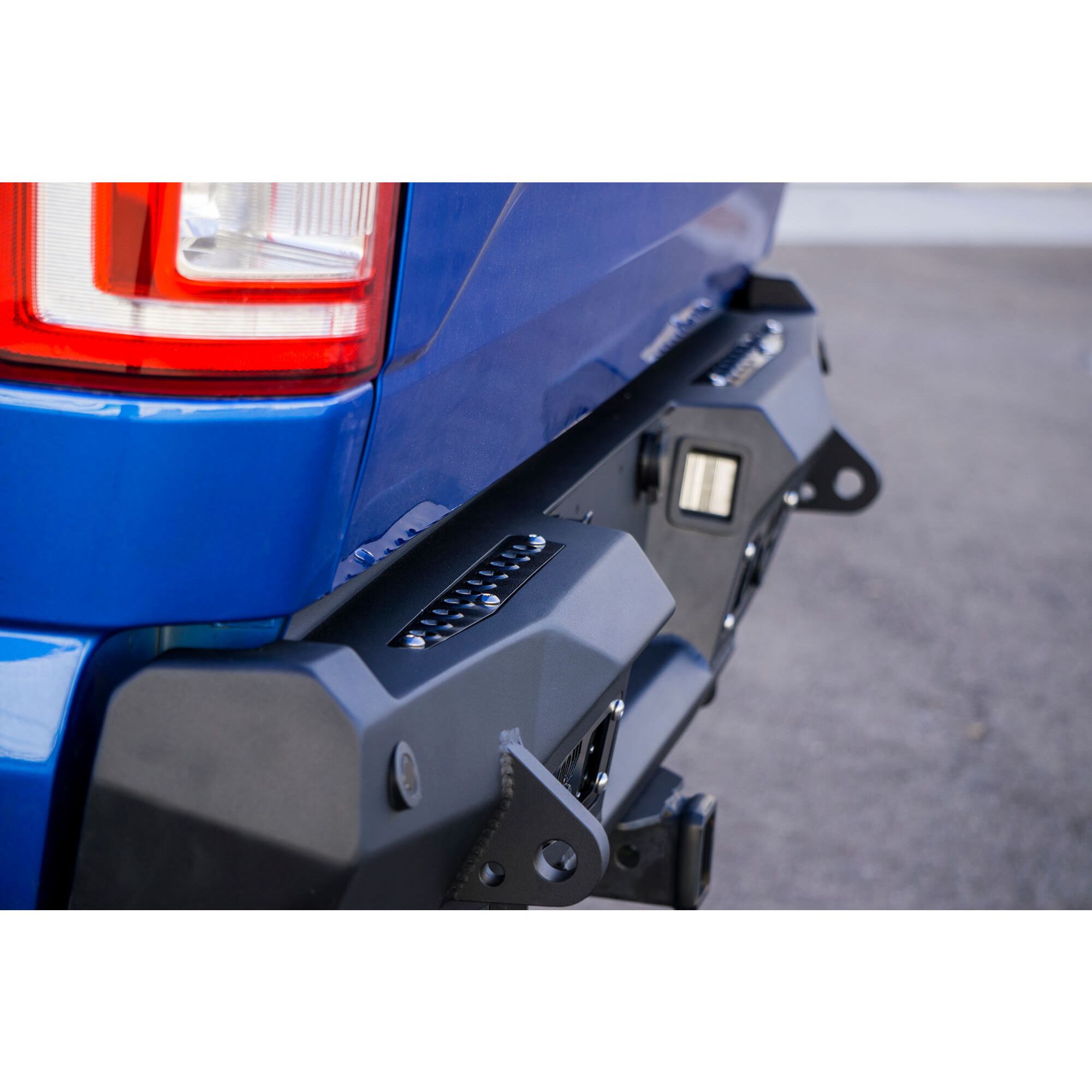 Ford F-150 Stealth Fighter Rear Bumper set up for duallys with back up sensor holes cut in panels in Hammer Black with Satin Black panels