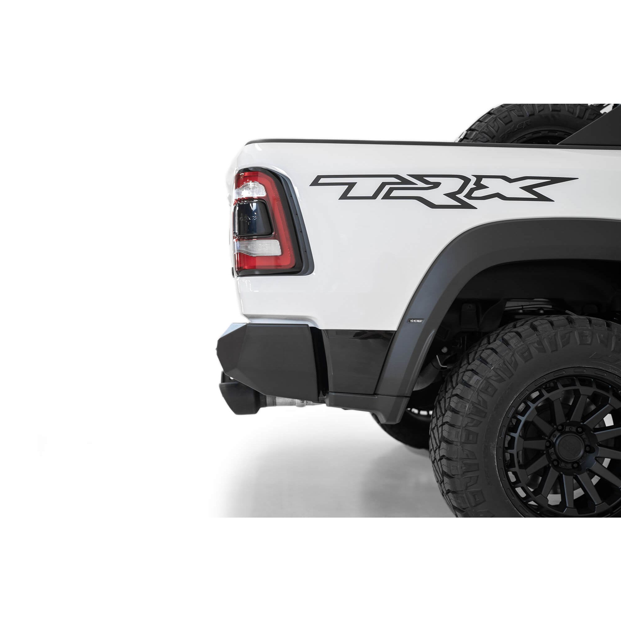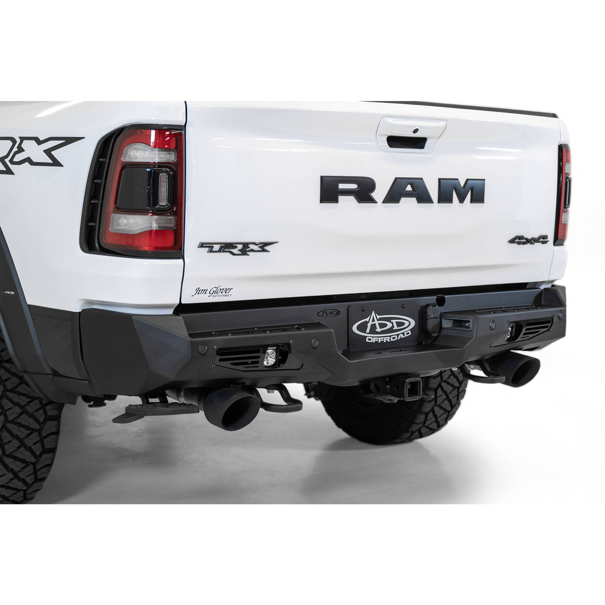 2021 – Up Ram TRX Bomber Rear Bumper with back up sensor cutouts with mounts for 2 cube lights in Hammer Black with Satin Black panels