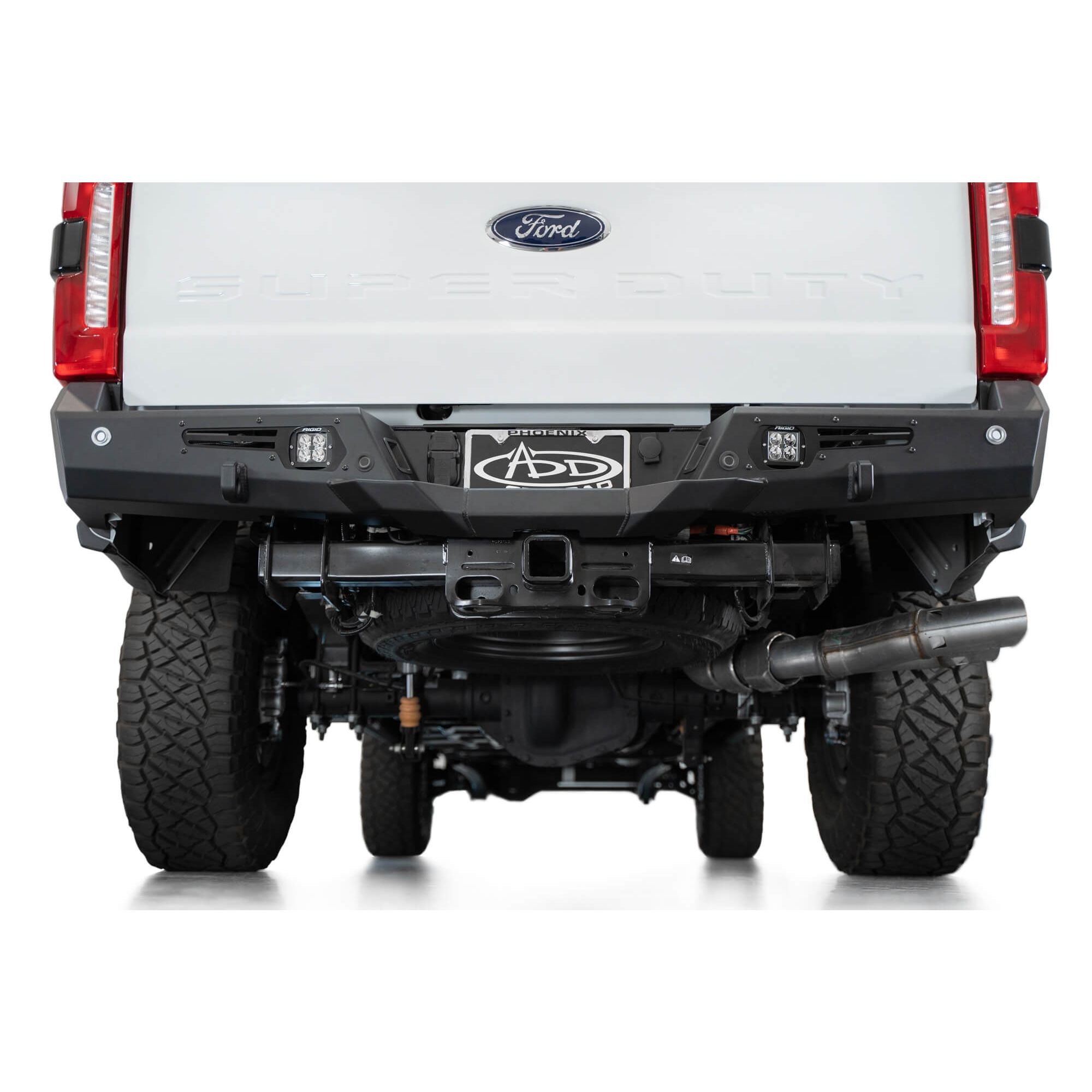 2023-Up Ford Super Duty F250 – Bomber Rear Bumper With Mounts For 2 Cube Lights In Hammer Black With Satin Black Panels