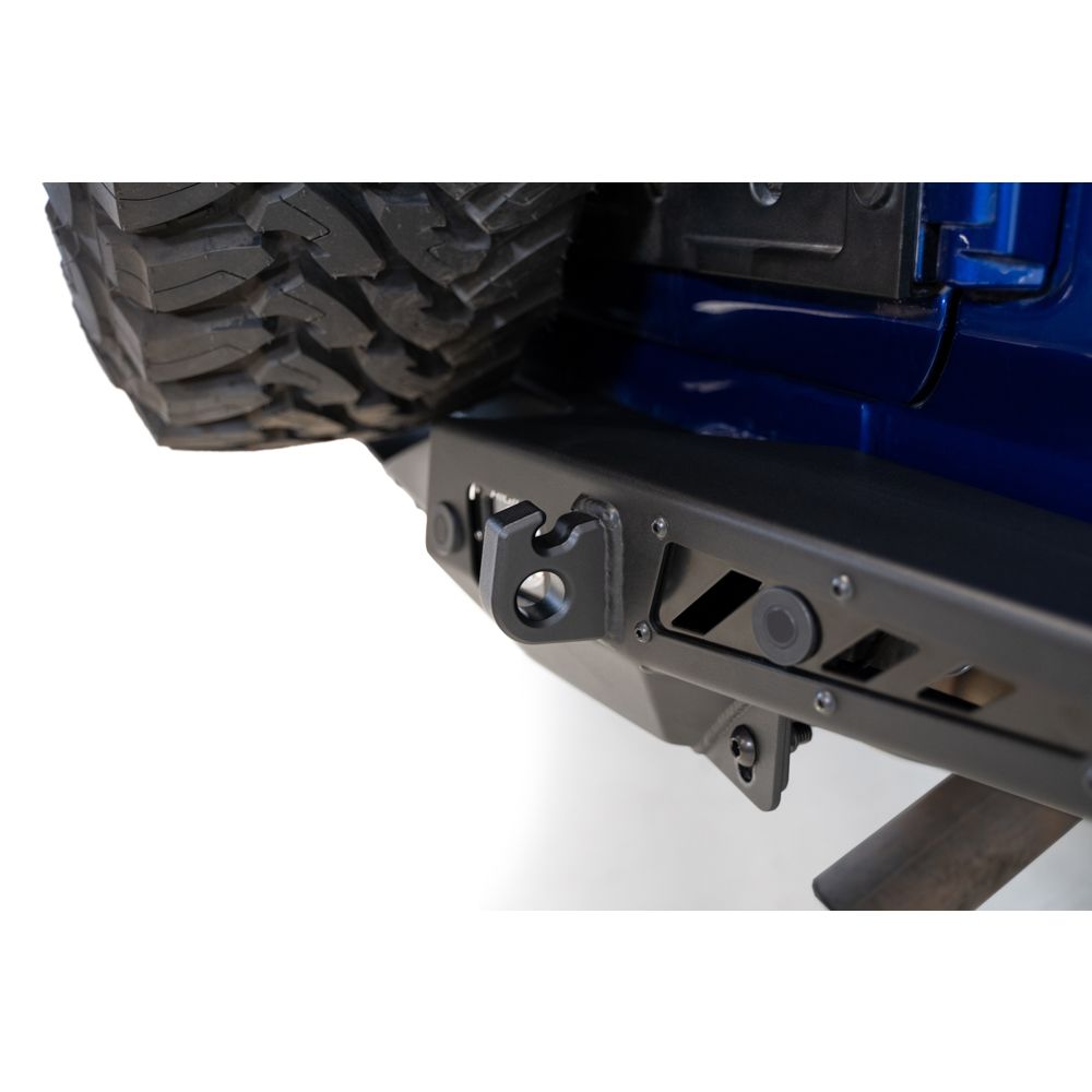 Jeep JL 2018 – Up Stealth Fighter Rear Bumper With D Ring Mounts And Mounts For 2 Cube Lights In Hammer Black With Satin Black Panels