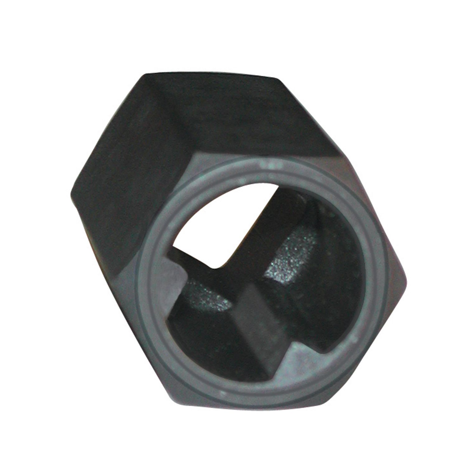 Aligning these trucks can be difficult because it is impossible to access the head of the cam bolt to adjust alignment angles. This special grooved socket fits over the end of the bolt allowing the technician to turn the alignment cams to change alignment angles after loosening the lock nut. CAUTION: Not for use with impact wrenches (air tools)