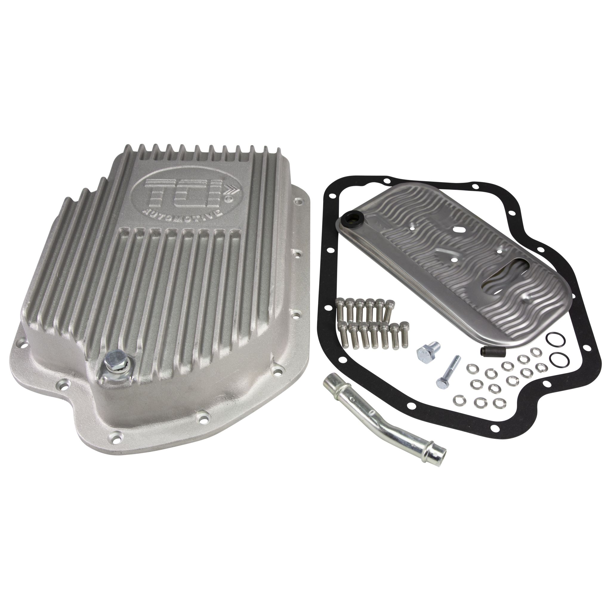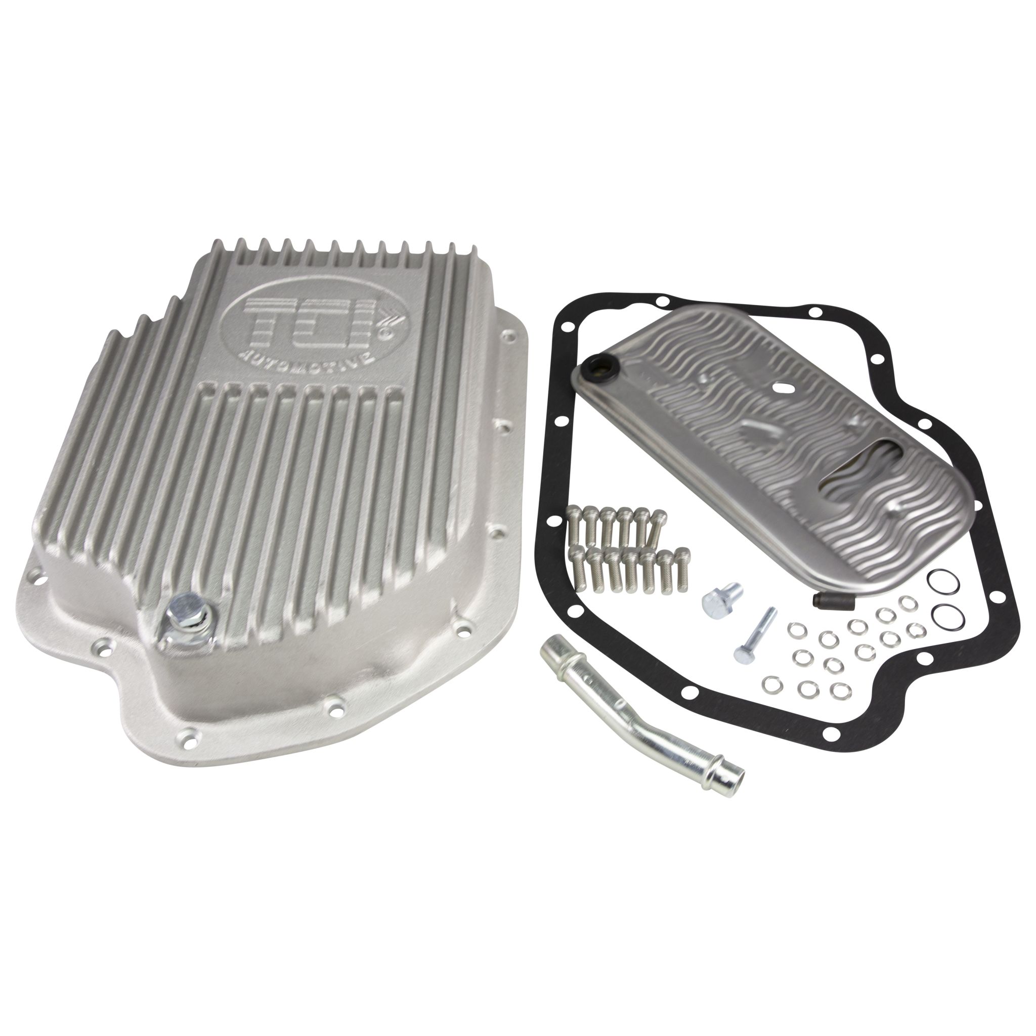 This TCI Cast Aluminum Deep Pan fits GM TH400. This pan features cooling fins, magnetic drain plug, hardware and gasket.