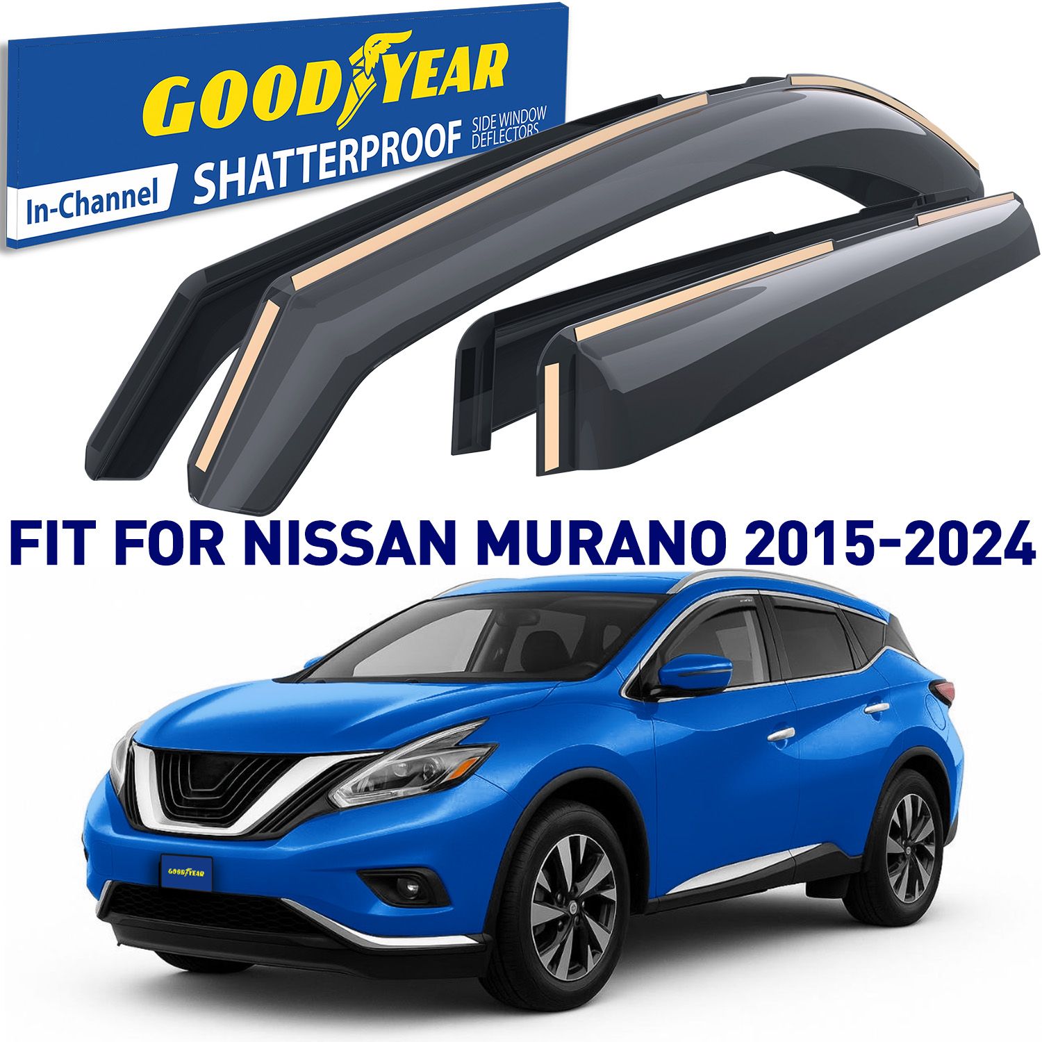 Goodyear shatterproof in-Channel Window Deflectors for Nissan Murano 2015-2024, Rain Guards, Window Visors for Cars, Vent Deflector, Car Accessories, 4 pcs – GY007889