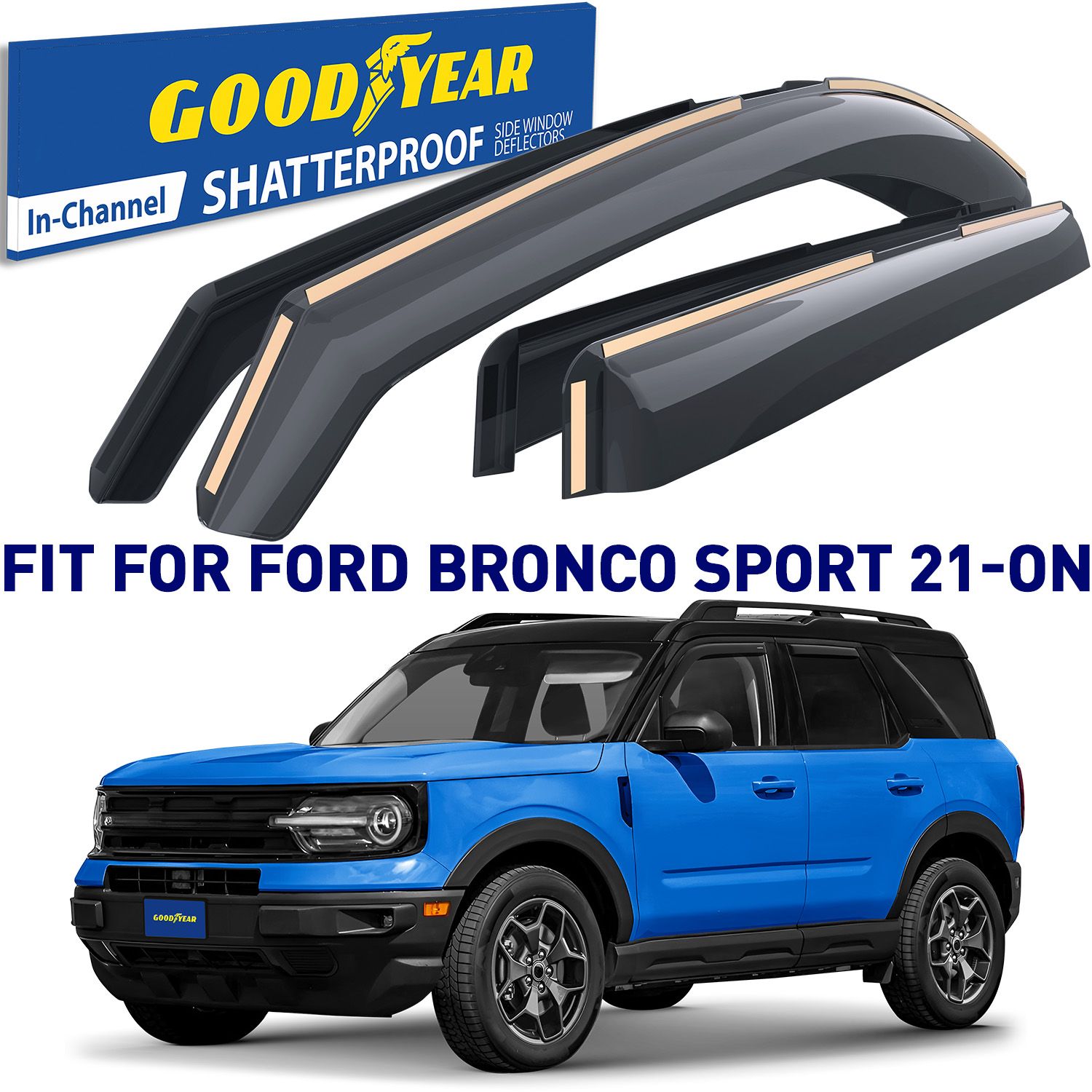 Goodyear Shatterproof in-Channel Window Deflectors for Ford Bronco Sport 2021-2024, Rain Guards, Window Visors for Cars, Vent Deflector, Car Accessories, 4 pcs – GY007894