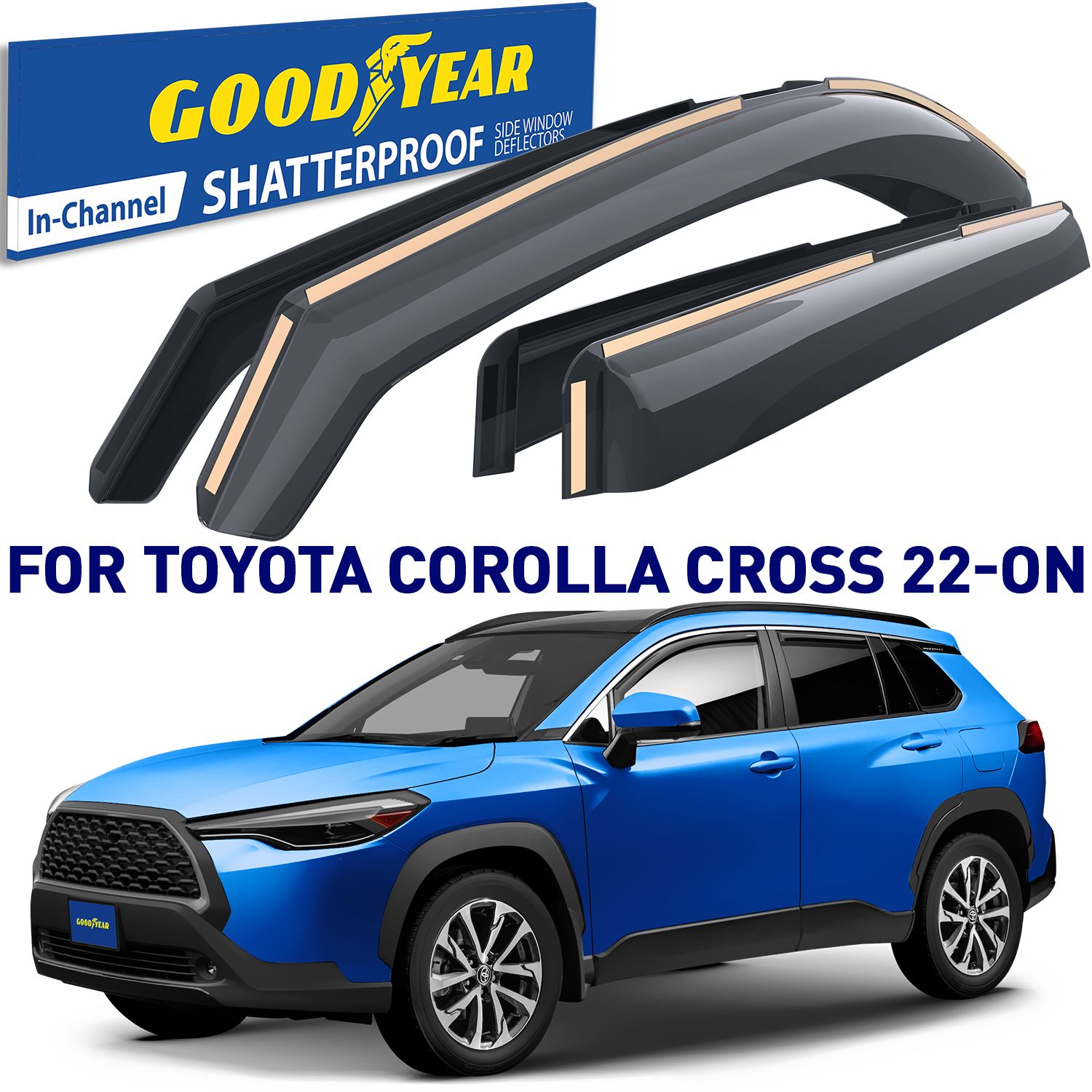 Goodyear Shatterproof in-Channel Window Deflectors Compatible with Toyota Corolla Cross 2022-2024, Rain Guards, Window Visors for Cars, Vent Deflector, Car Accessories, 4 pcs – GY007895