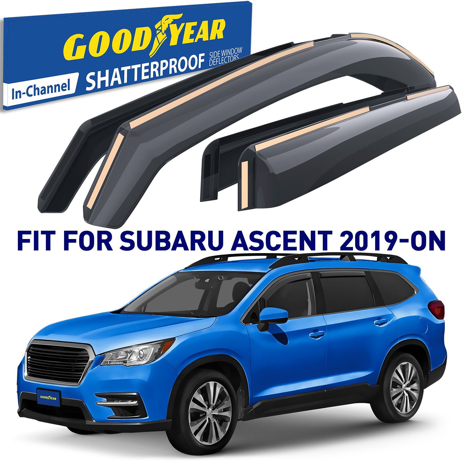 Goodyear shatterproof in-Channel Window Deflectors for Subaru Ascent 2019-2024, Rain Guards, Window Visors for Cars, Vent Deflector, Car Accessories, 4 pcs – GY007940