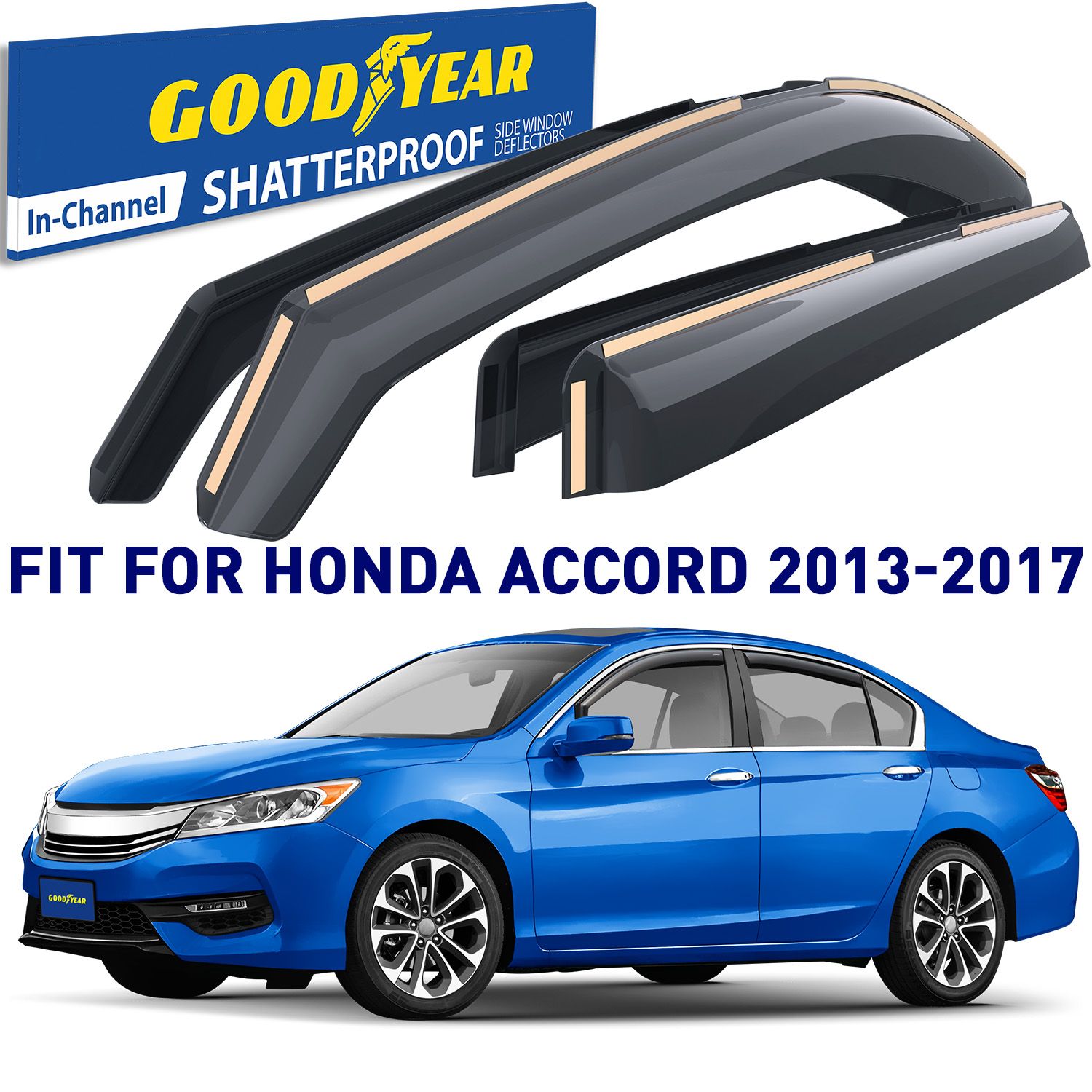 Goodyear Shatterproof in-Channel Window Deflectors for Honda Accord 13-17 , Rain Guards, Window Visors for Cars, Vent Deflector, Car Accessories, 4pcs., – GY008001