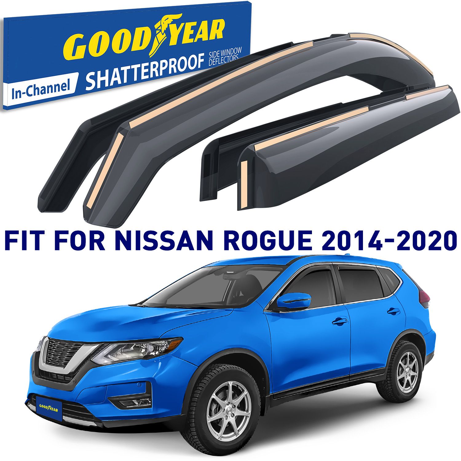 – Car wash friendly. PROVIDES A CUSTOM FIT: Nissan Rogue 2014 2015 2016 2017 2018 2019 2020. PACKAGE INCLUDES: 2 Front deflectors, 2 Rear deflectors, Fastening brackets, Metal plate and plastic blade, Degrease wipes, Installation instructions, Branded Goodyear color box, Protective shipping box. 100% MONEY BACK GUARANTEE ensures this will be your best bet for a pleasing no-risk purchase. Many customers love these Goodyear Window Guards so much they return to buy more. This makes a much appreciated gift for friends, family, and co-workers.