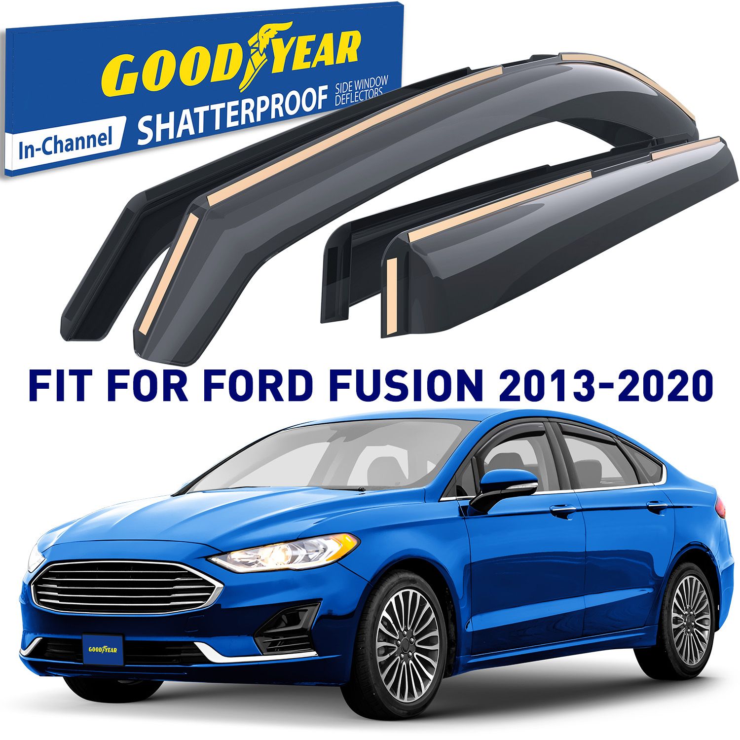 Goodyear Shatterproof in-Channel Window Deflectors for Ford Fusion 13-20, Rain Guards, Window Visors for Cars, Vent Deflector, Car Accessories, 4pcs., – GY003452LP