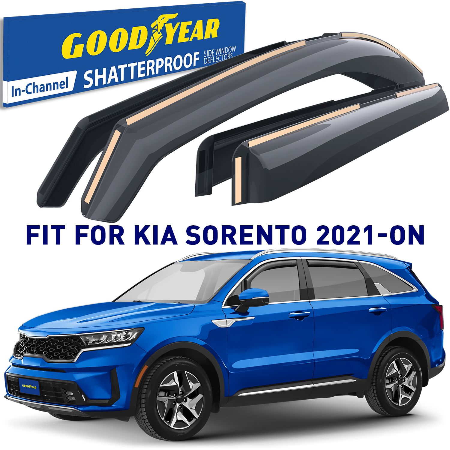 Goodyear Shatterproof in-Channel Window Deflectors for Kia Sorento 2021-2023, Rain Guards, Window Visors for Cars, Vent Deflector, Car Accessories, 4 pcs – GY003466
