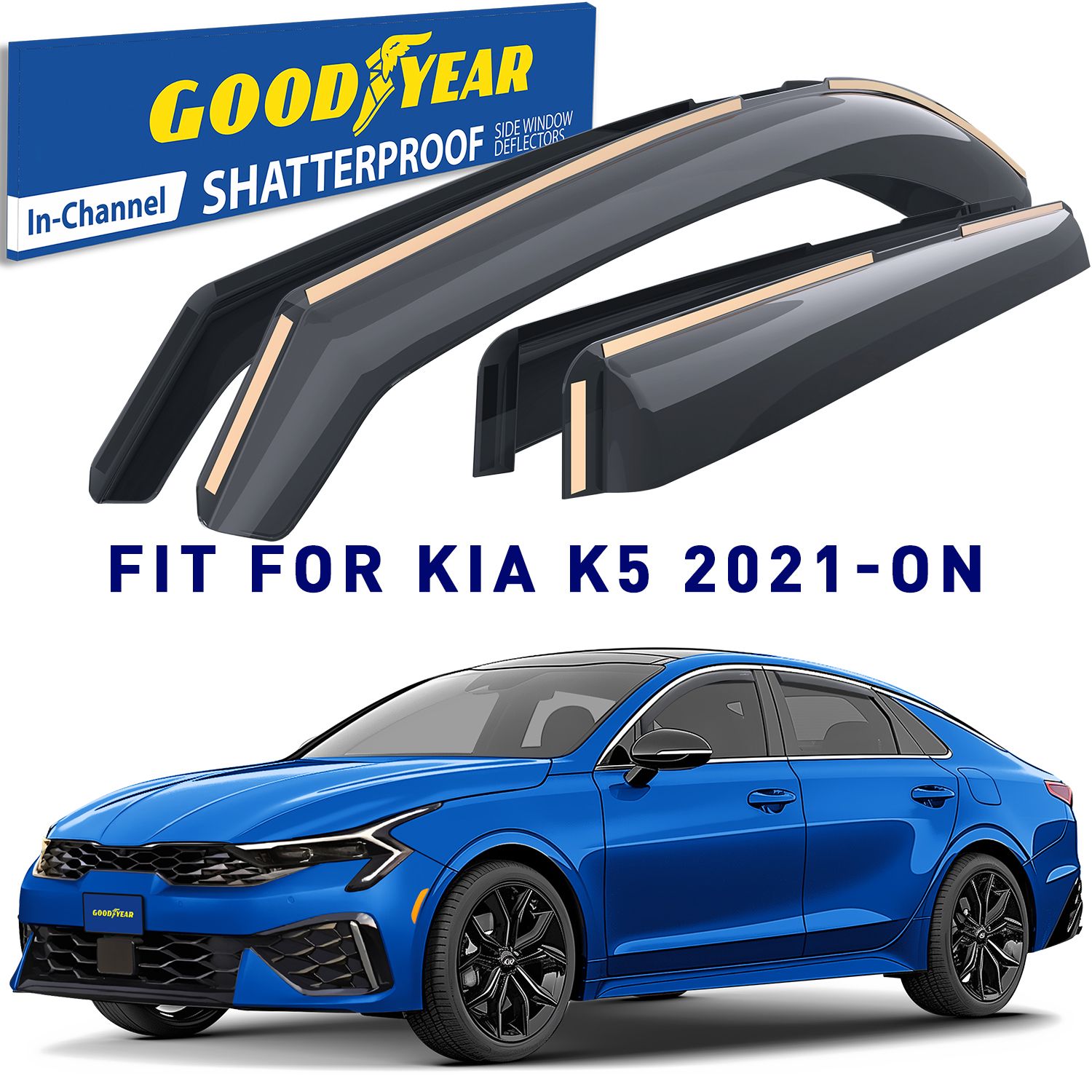 Goodyear Shatterproof in-Channel Window Deflectors for Kia K-5 2021-2023, Rain Guards, Window Visors for Cars, Vent Deflector, Car Accessories, 4 pcs – GY003484
