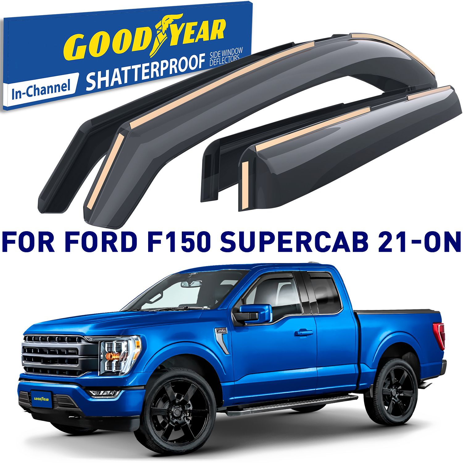 Goodyear Shatterproof in-Channel Window Deflectors for Ford F150 2021-2023 SuperCab, Rain Guards, Window Visors for Cars, Vent Deflector, Car Accessories, 4 pcs – GY003495