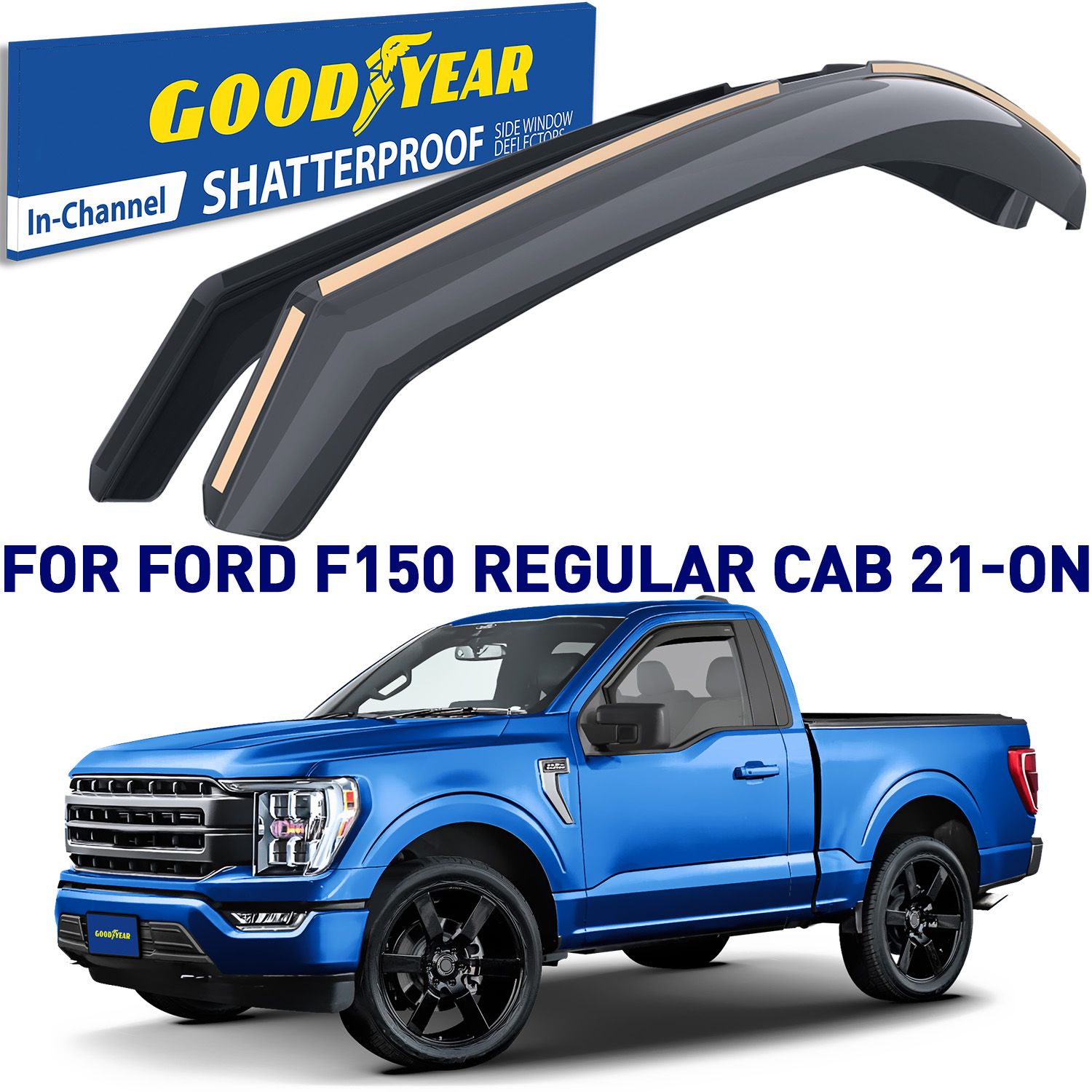 Goodyear Shatterproof in-Channel Window Deflectors for Ford F150 2021-2023 Regular Cab/SuperCrew/SuperCab, Rain Guards, Window Visors for Cars, Vent Deflector, Car Accessories, 2 pcs – GY003497